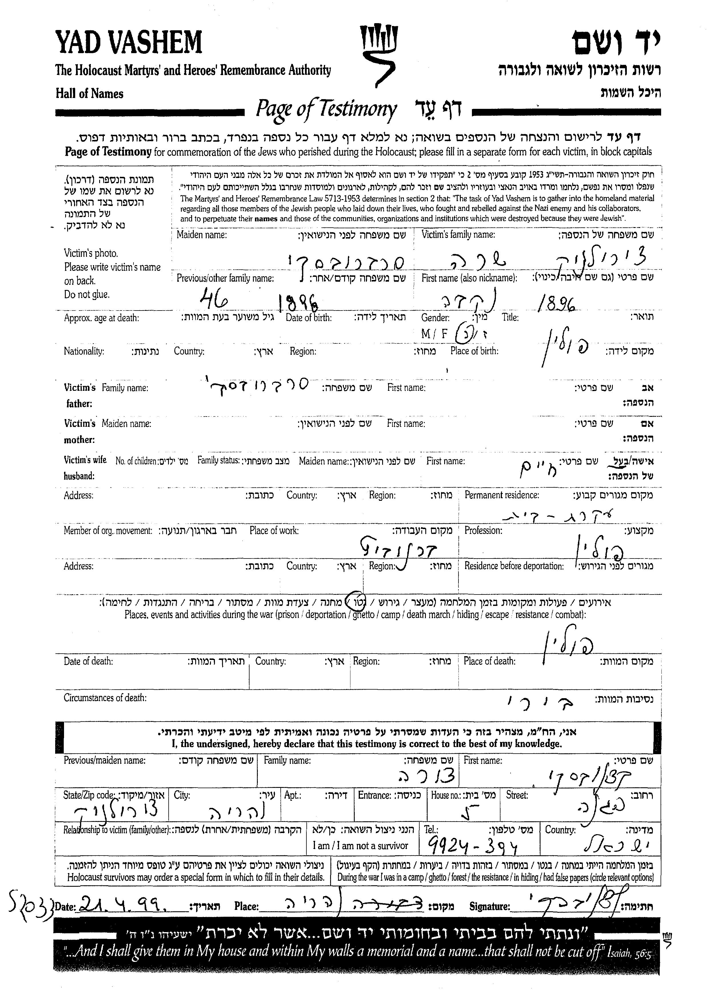 Yad Vashem - Pages of Testimony Names Memorial Collection