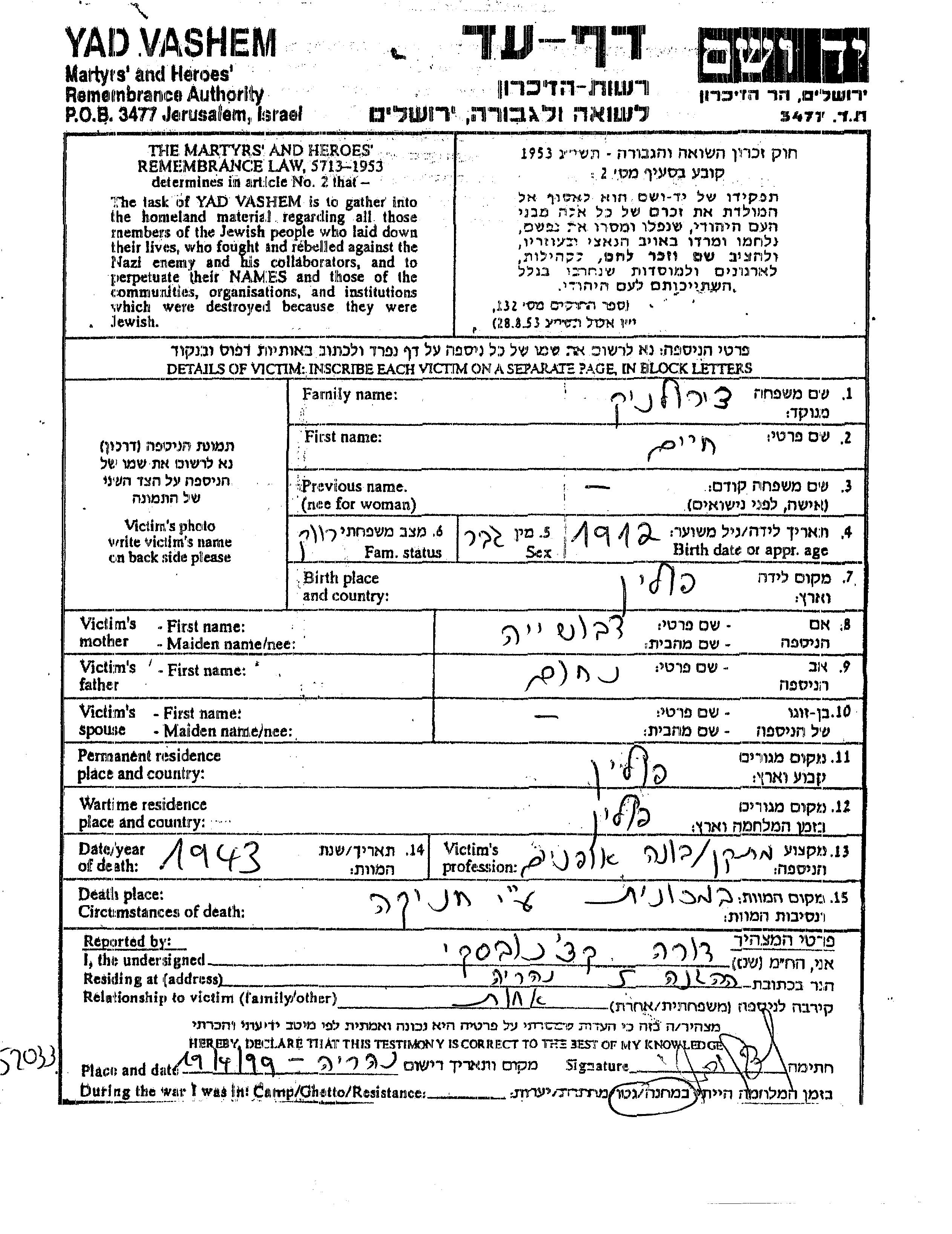 Yad Vashem - Pages of Testimony Names Memorial Collection