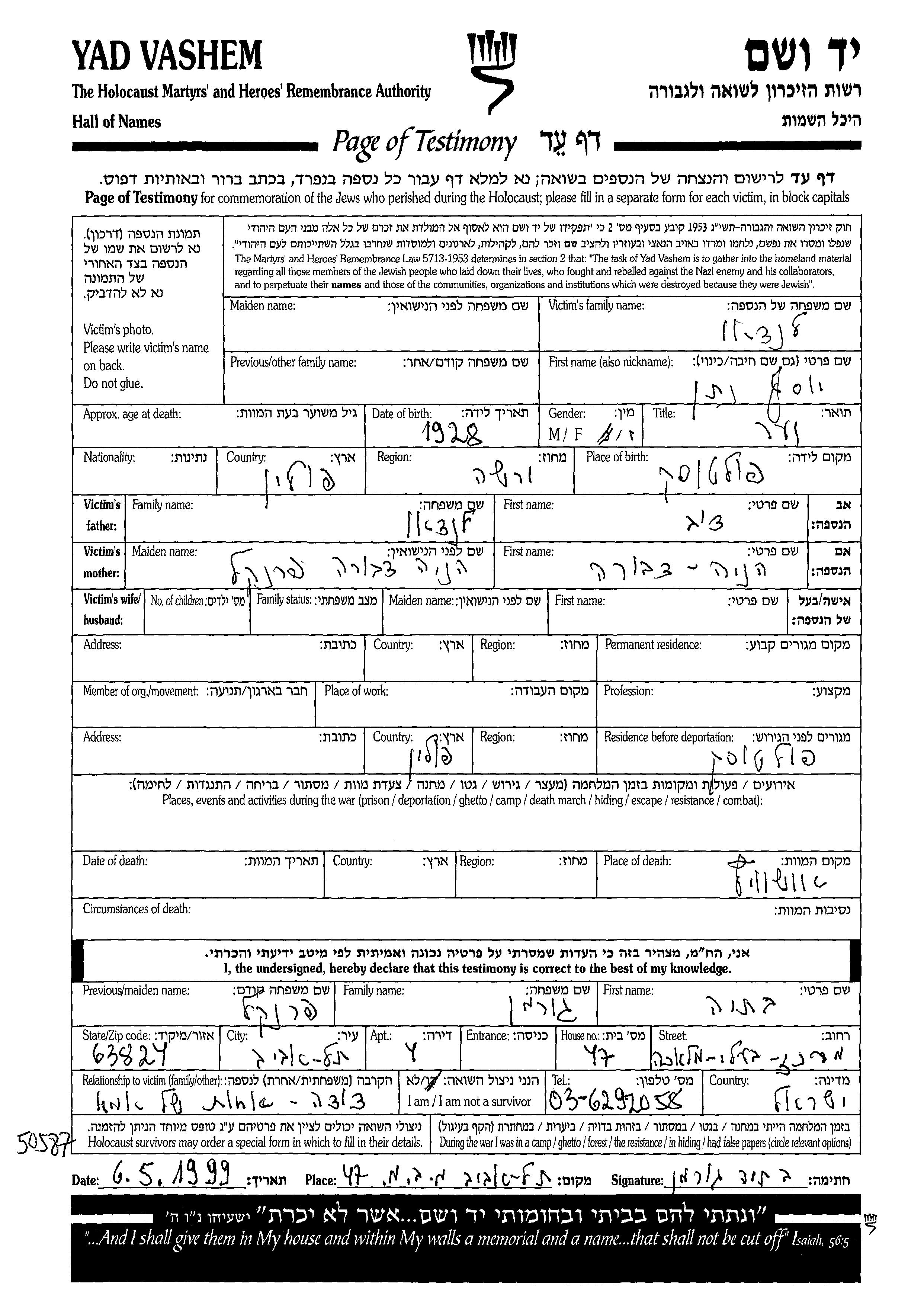 Yad Vashem - Pages of Testimony Names Memorial Collection