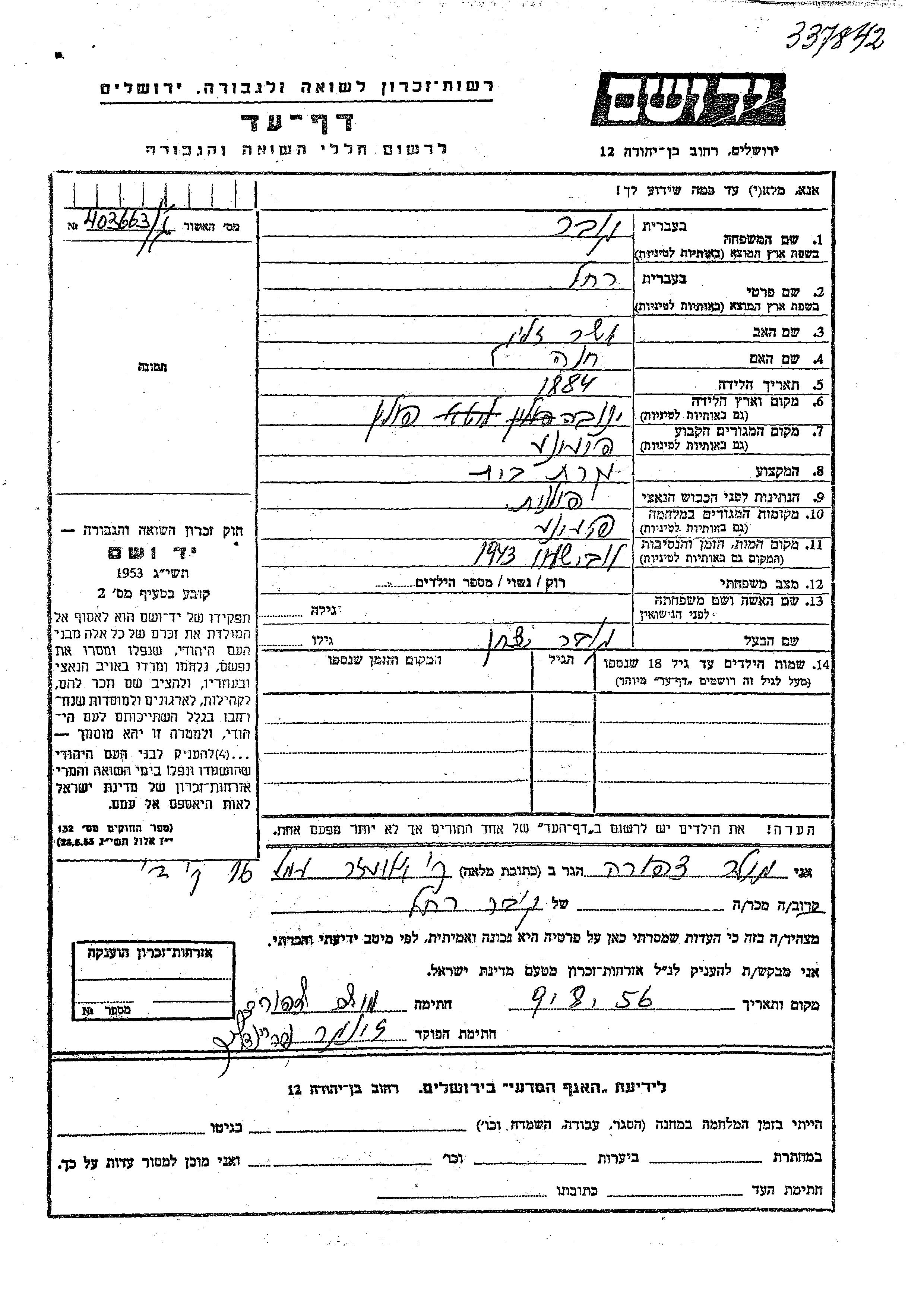 Yad Vashem - Pages of Testimony Names Memorial Collection