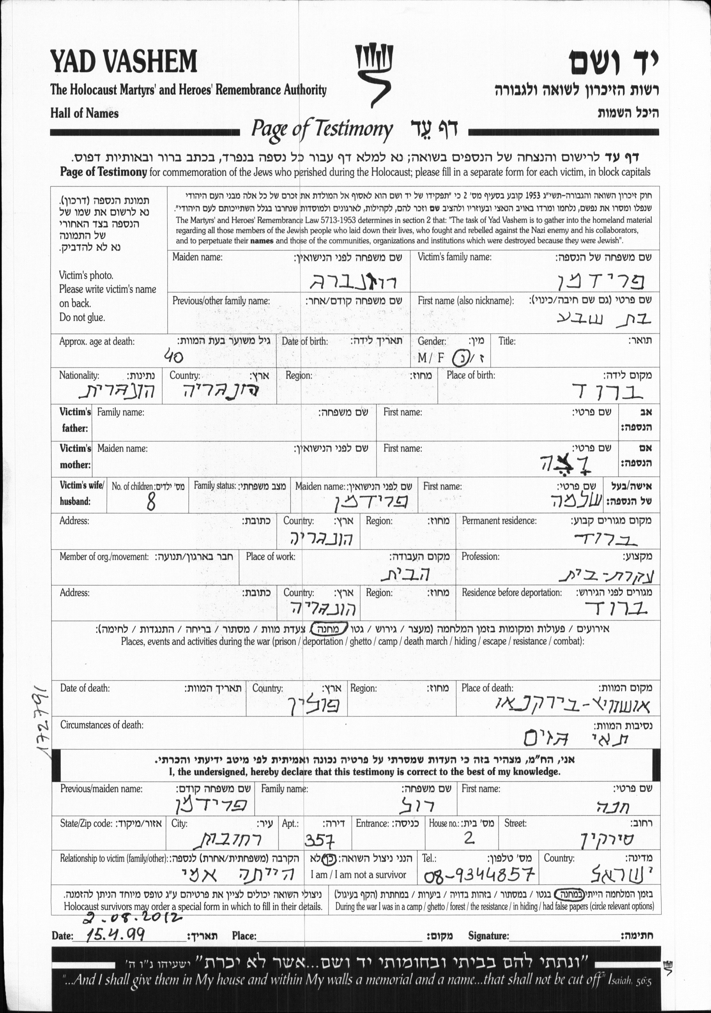 Yad Vashem - Pages of Testimony Names Memorial Collection