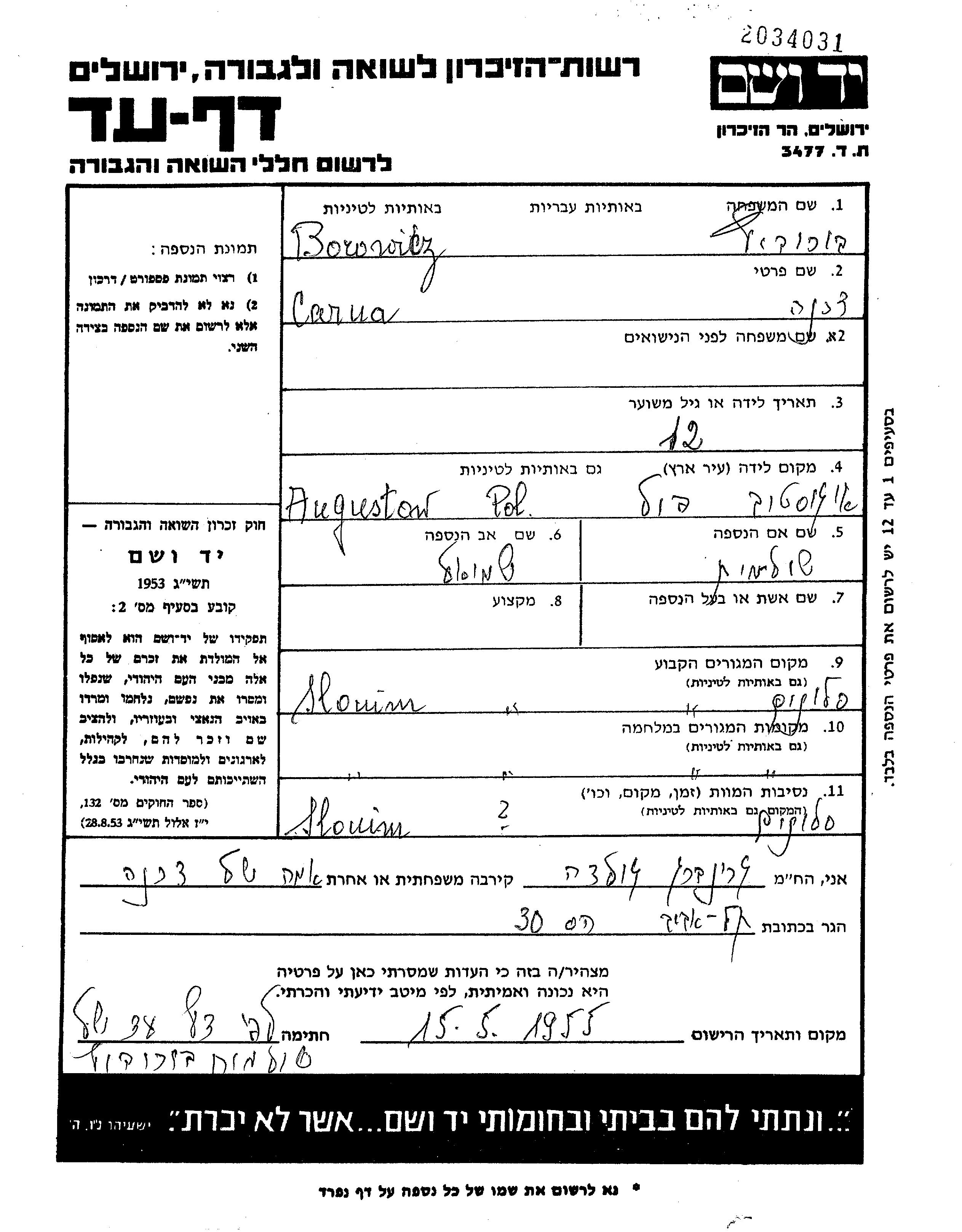 Yad Vashem - Pages of Testimony Names Memorial Collection