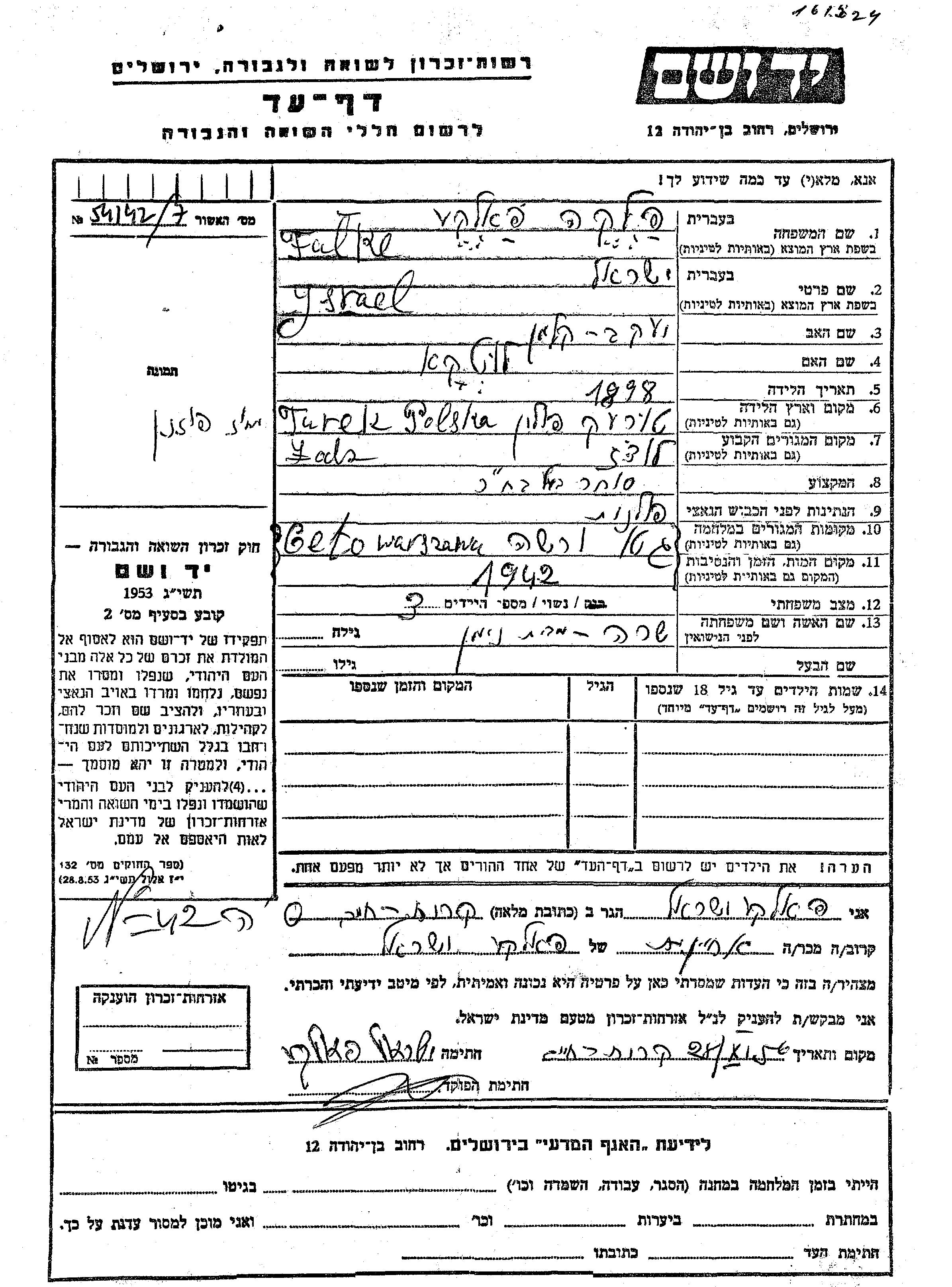 Ysrael a été assassiné pendant la Shoah. Lieu de la mort: Warsaw, Pologne en 1942.