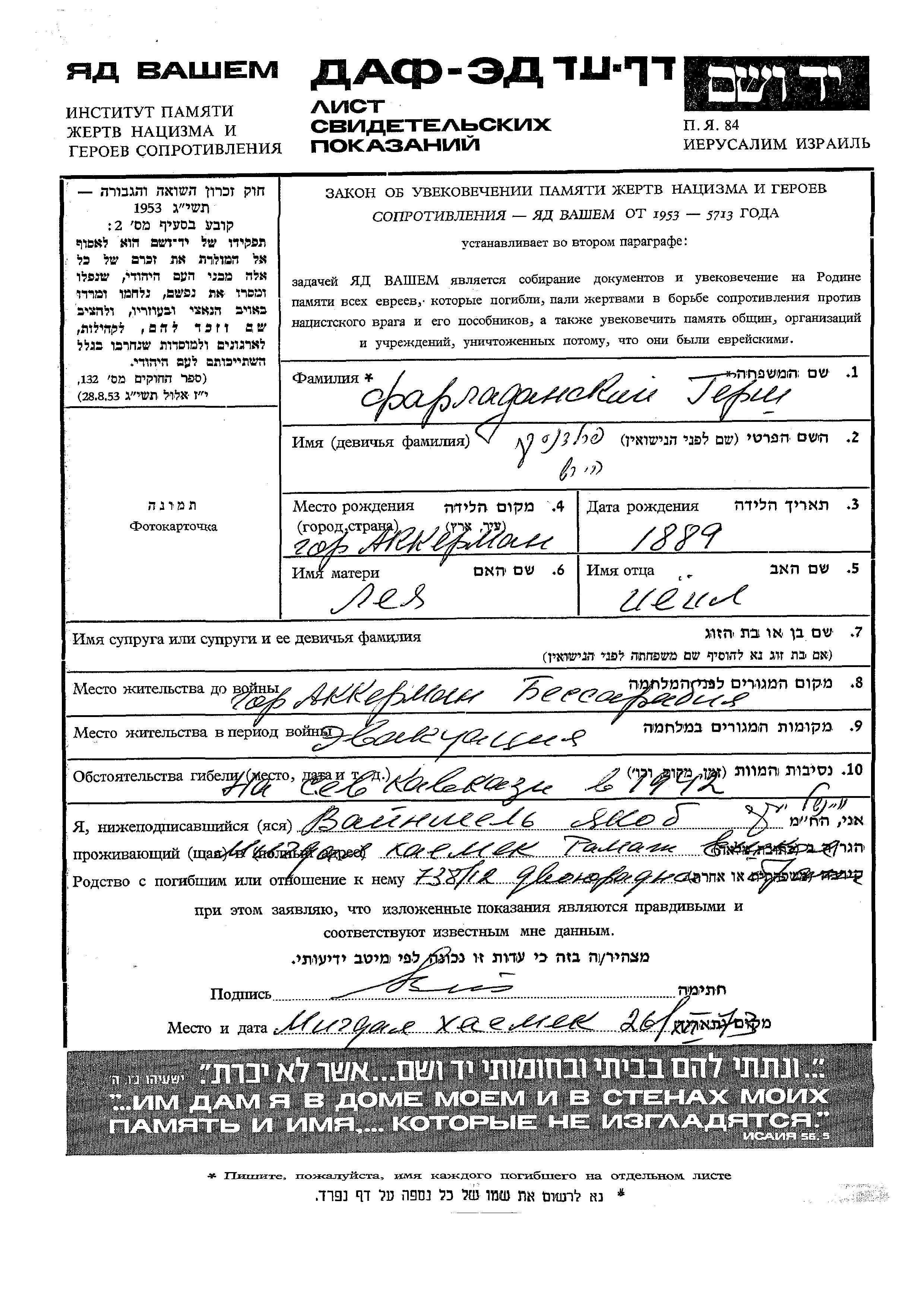 Yad Vashem - Pages of Testimony Names Memorial Collection