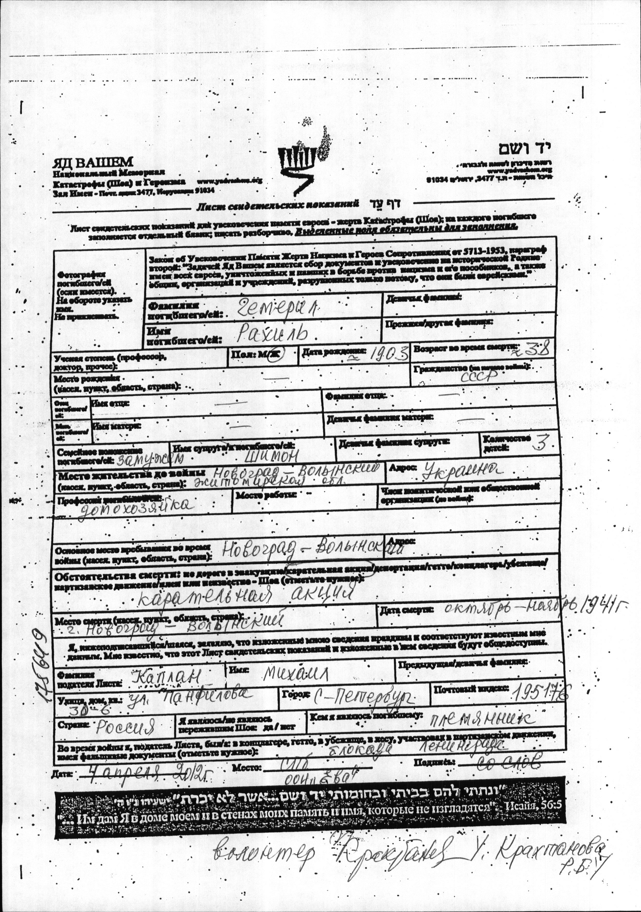 Au cours de la Shoah, les Juifs ont été assassinés de diverses façons : gazage, exécution par balle, immolation, noyade, enterrés vivants, épuisement par les travaux forcés, affamement, maladies et épidémies, privation de soins médicaux et de mesures de salubrité, etc. Certains Juifs ont mis fin à leur vie pour échapper à l'arrestation, aux persécutions ou aux souffrances permanentes et sans aucun espoir. Des dizaines de milliers de soldats juifs servant dans l’armée soviétique et capturés comme prisonniers de guerre furent sélectionnés comme juifs et assassinés. Beaucoup furent enregistrés comme «disparus au combat».