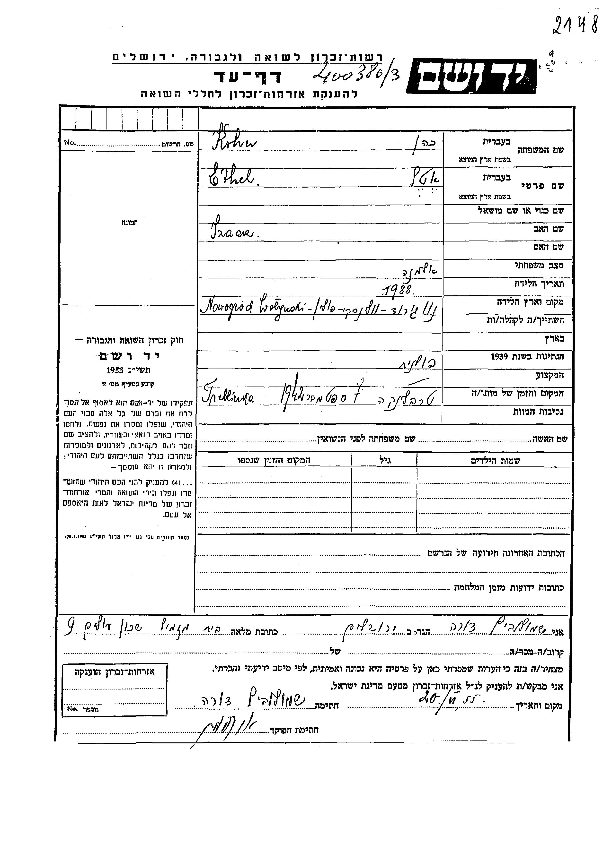 Yad Vashem - Pages of Testimony Names Memorial Collection