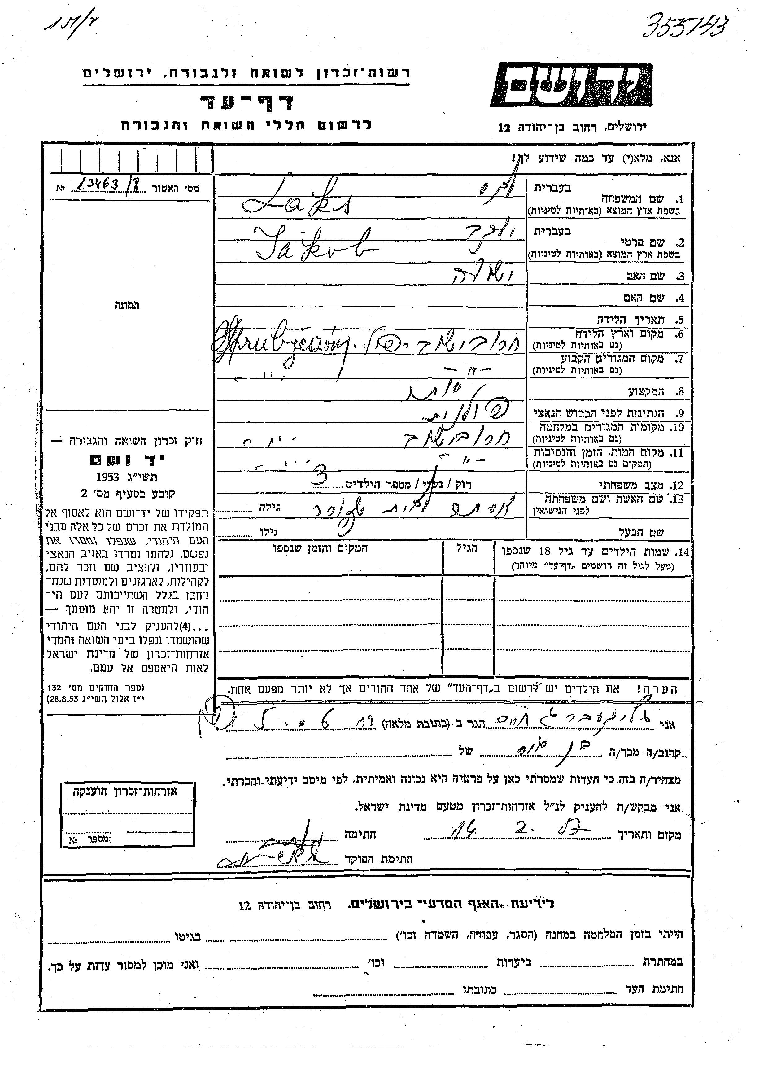 Jakub a été assassiné pendant la Shoah. Lieu de la mort: Hrubieszow, Pologne.