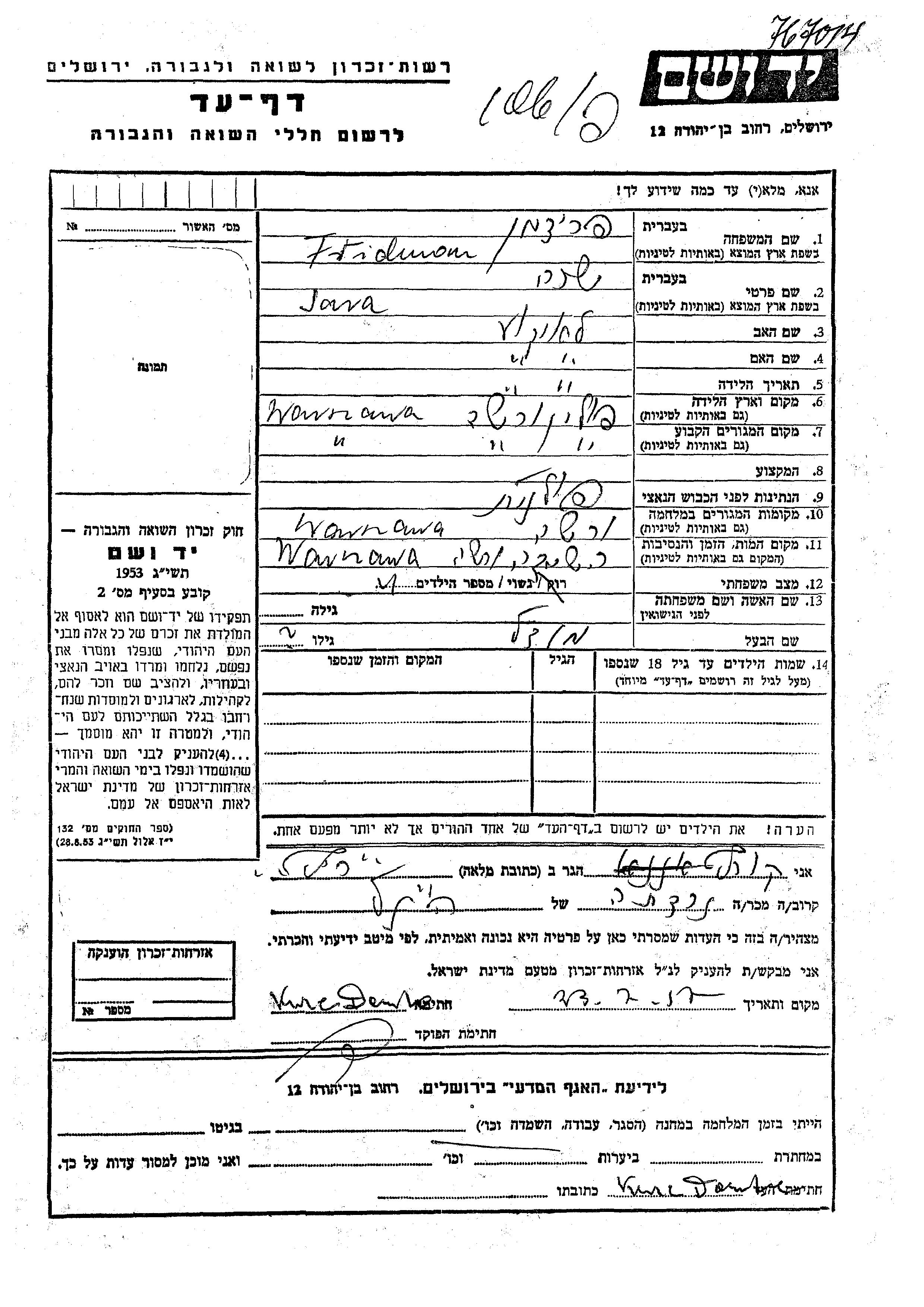 Sara Fridman est née à Warszawa, Pologne. Elle était Mariée à Mendel. Avant la seconde guerre mondiale elle vivait à Warszawa, Pologne. Pendant la guerre, elle était à Warszawa, Pologne.