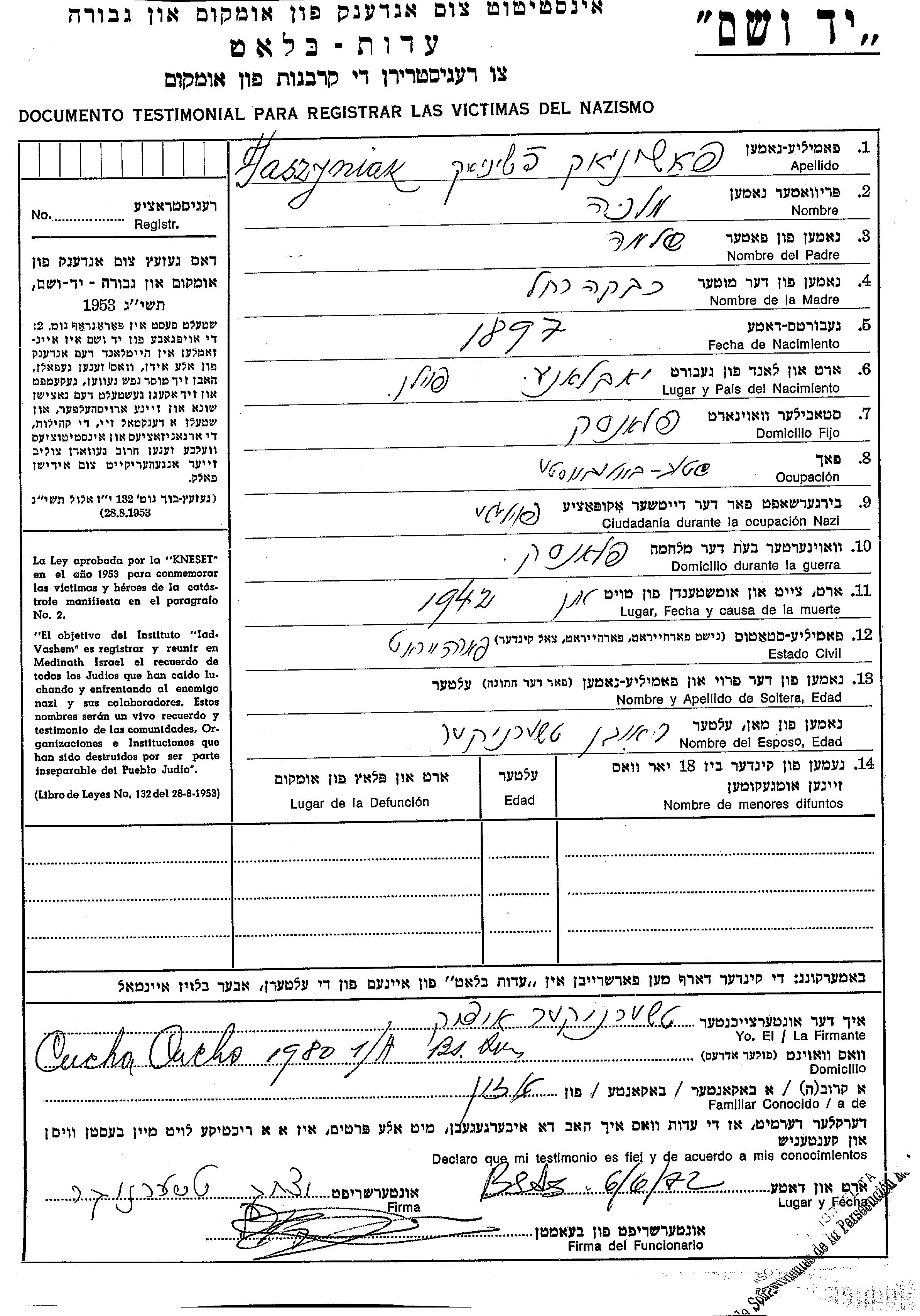 Yad Vashem - Pages of Testimony Names Memorial Collection