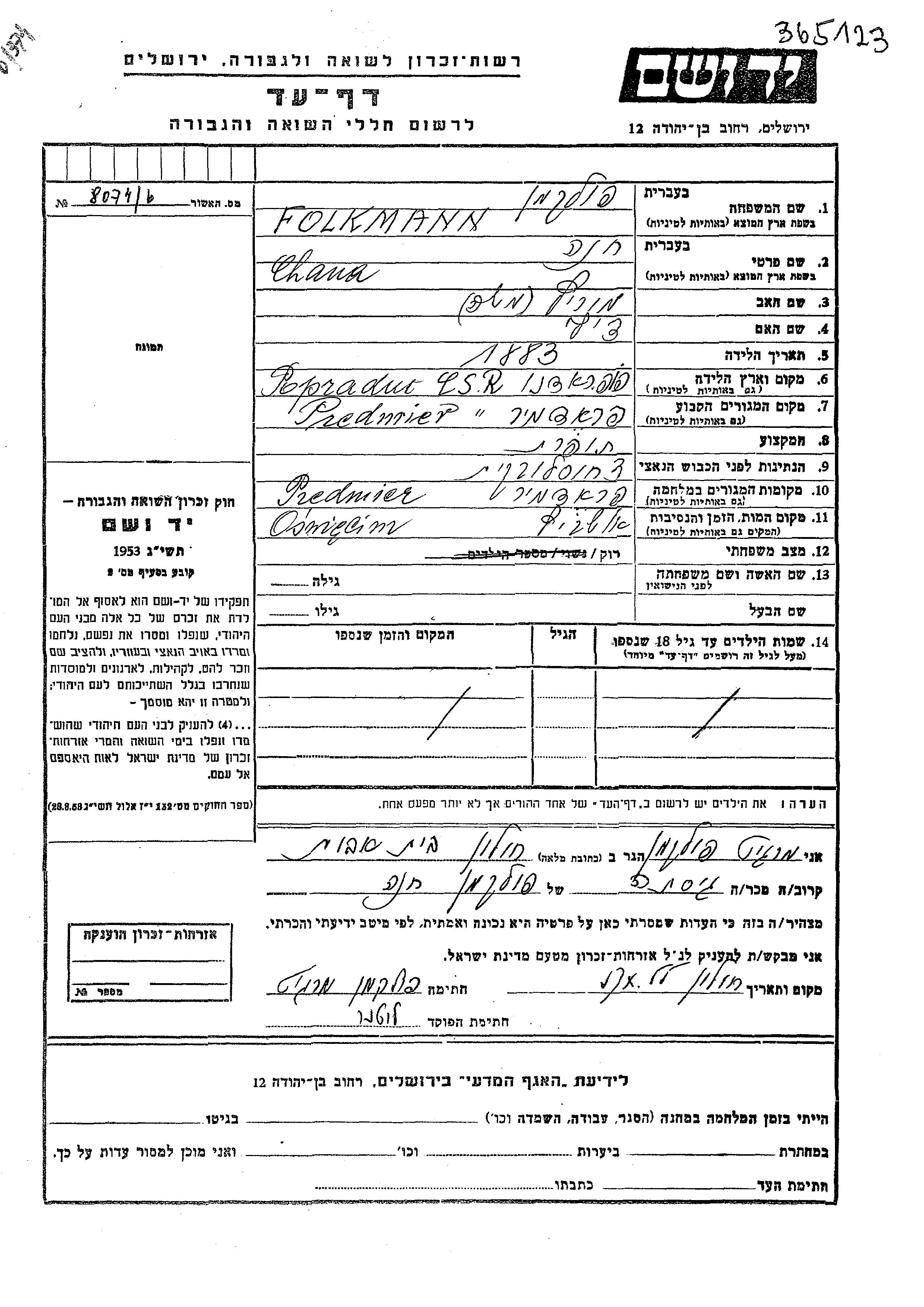 Yad Vashem - Pages of Testimony Names Memorial Collection