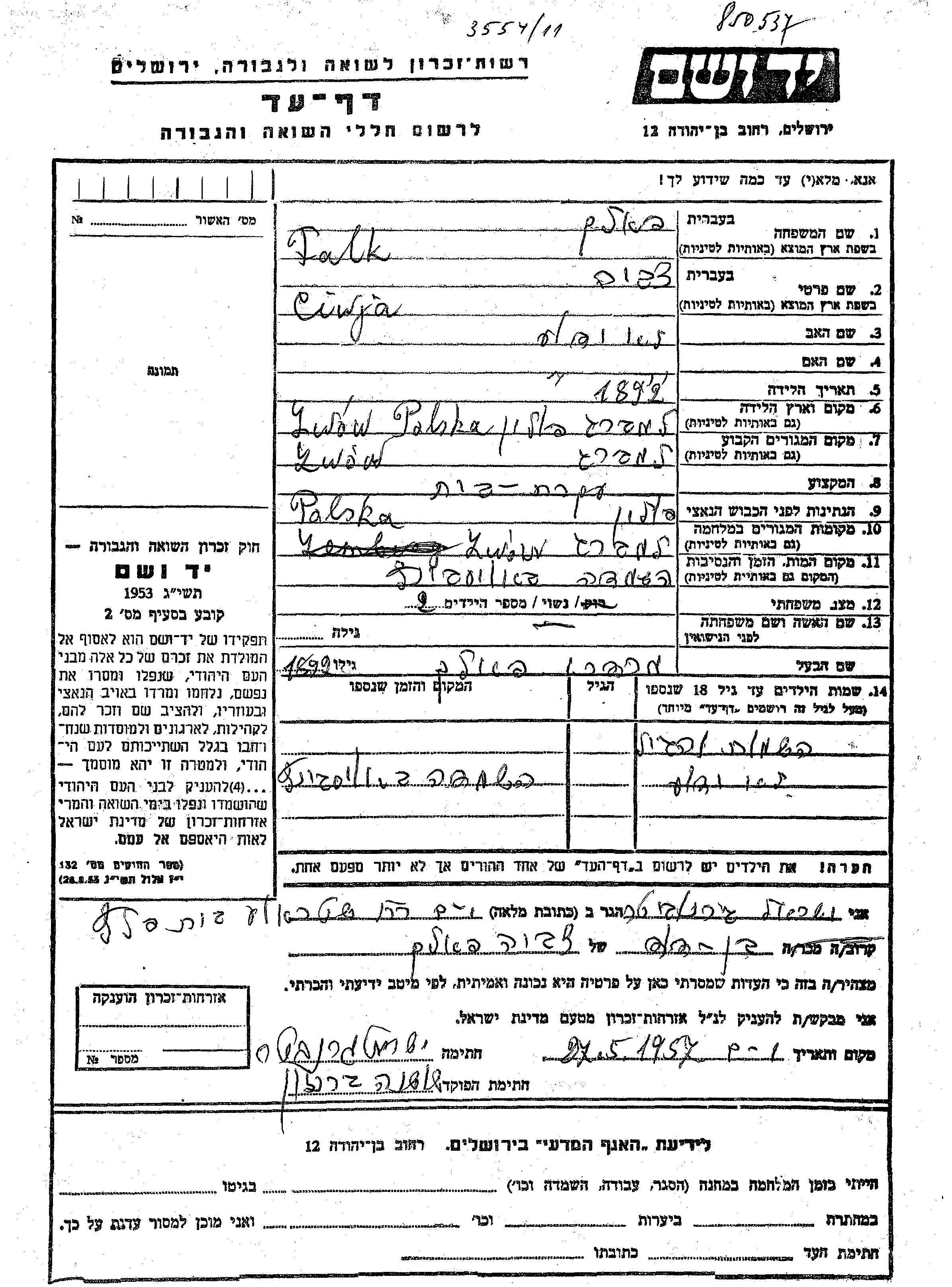 Yad Vashem - Pages of Testimony Names Memorial Collection