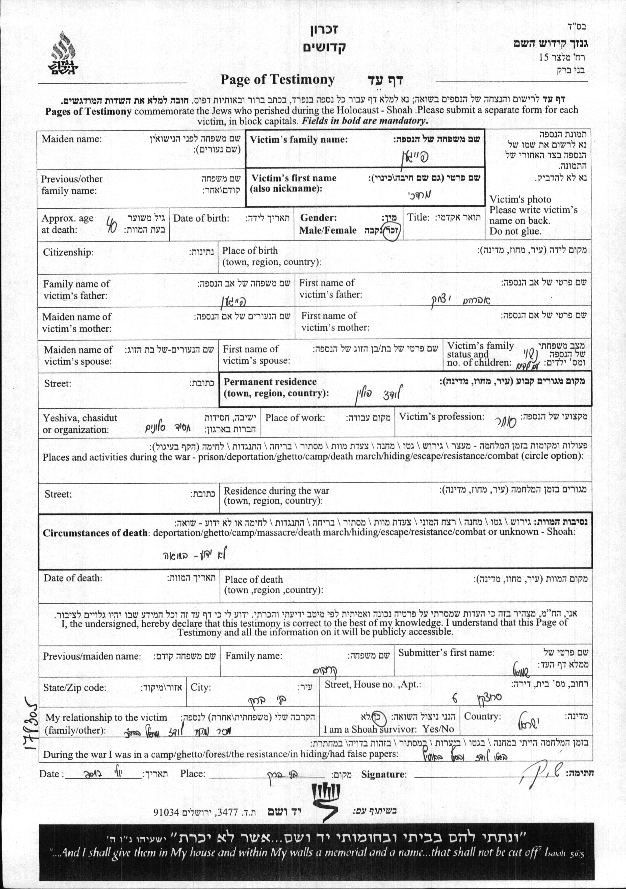 Yad Vashem - Pages of Testimony Names Memorial Collection