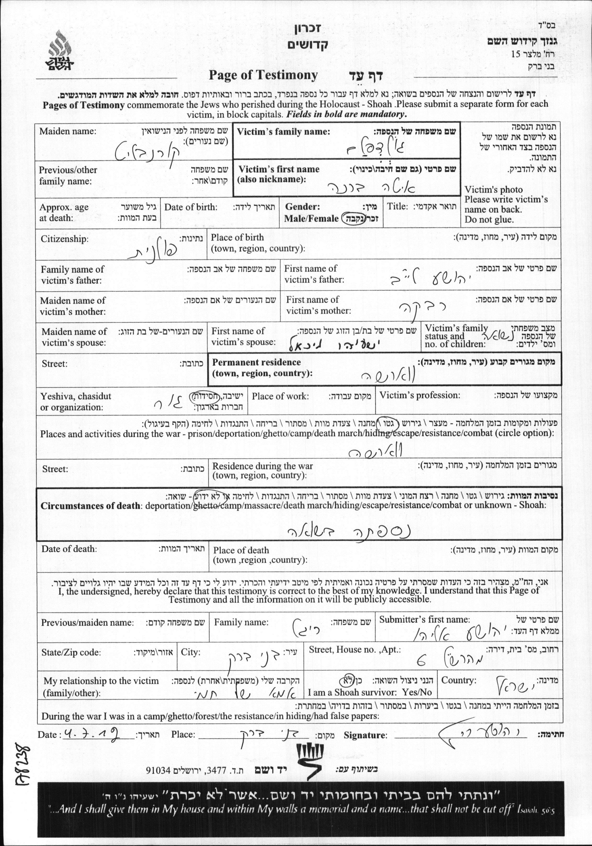 Yad Vashem - Pages of Testimony Names Memorial Collection