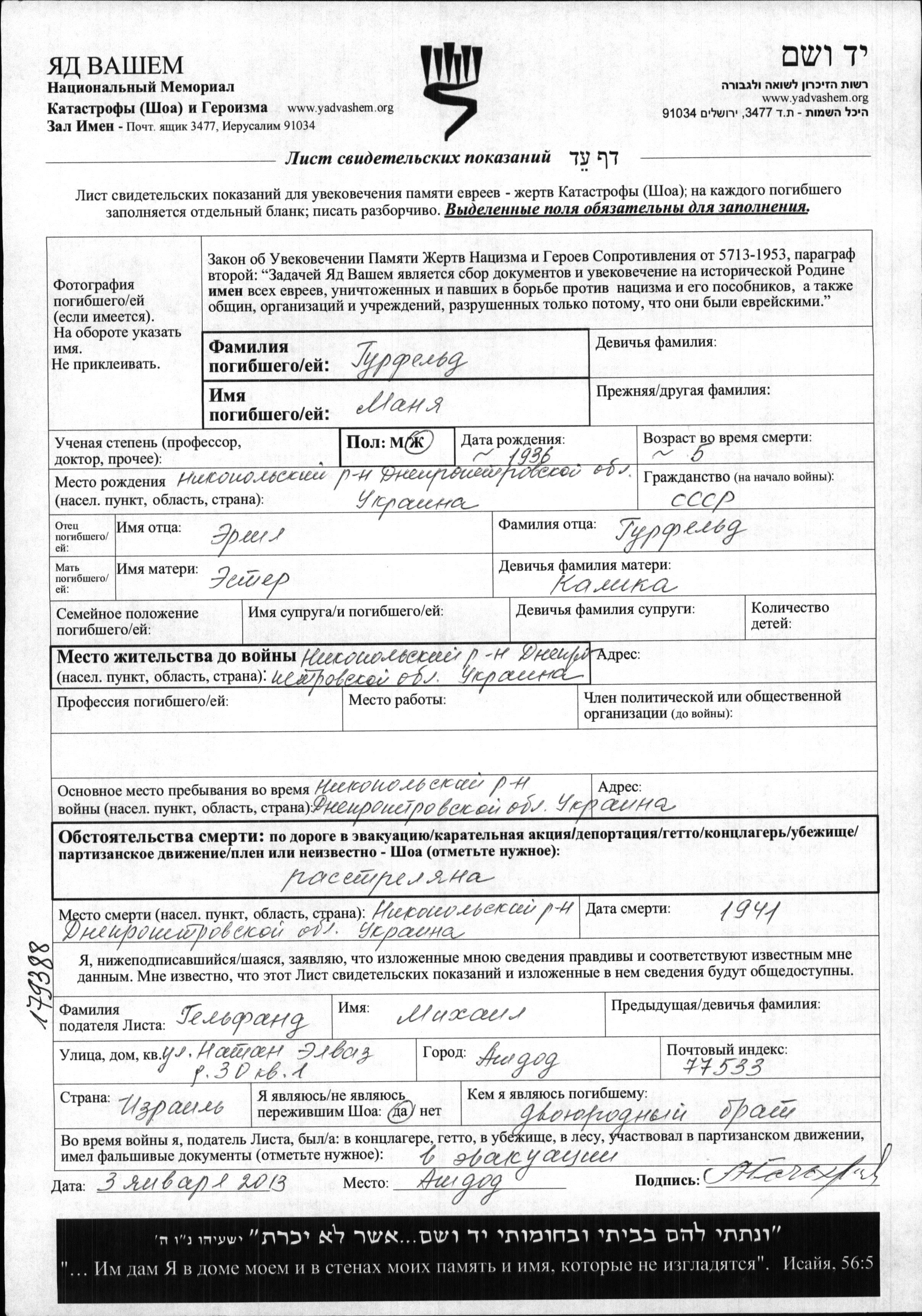 Yad Vashem - Pages of Testimony Names Memorial Collection