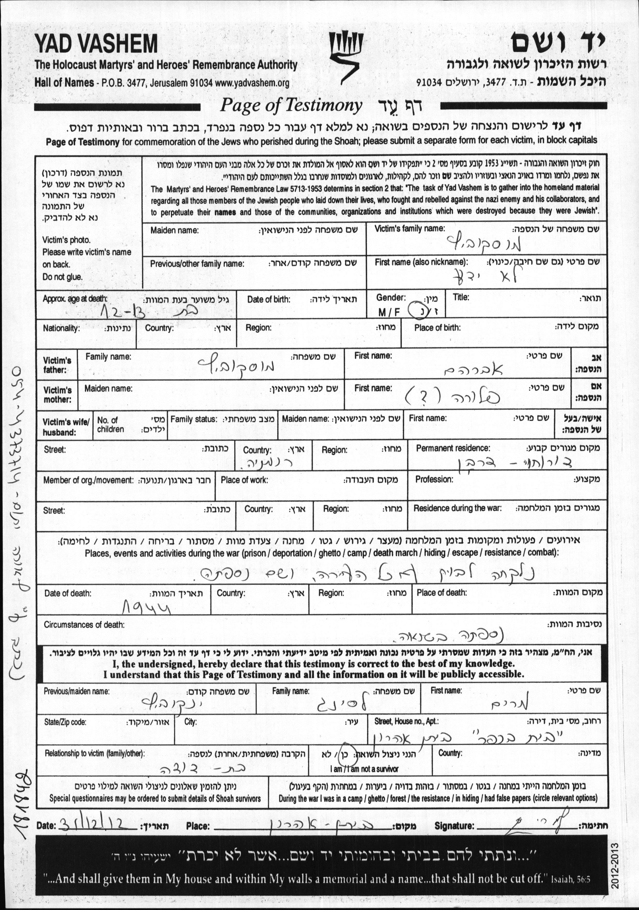 Recherche par date de la mort pendant la période de la Shoah: 1933-1945. Sélectionnez 'Exact'; dans la liste pour rechercher l'année exacte, ou sélectionner '+/- 2 ans'; ou '+/- 5 ans