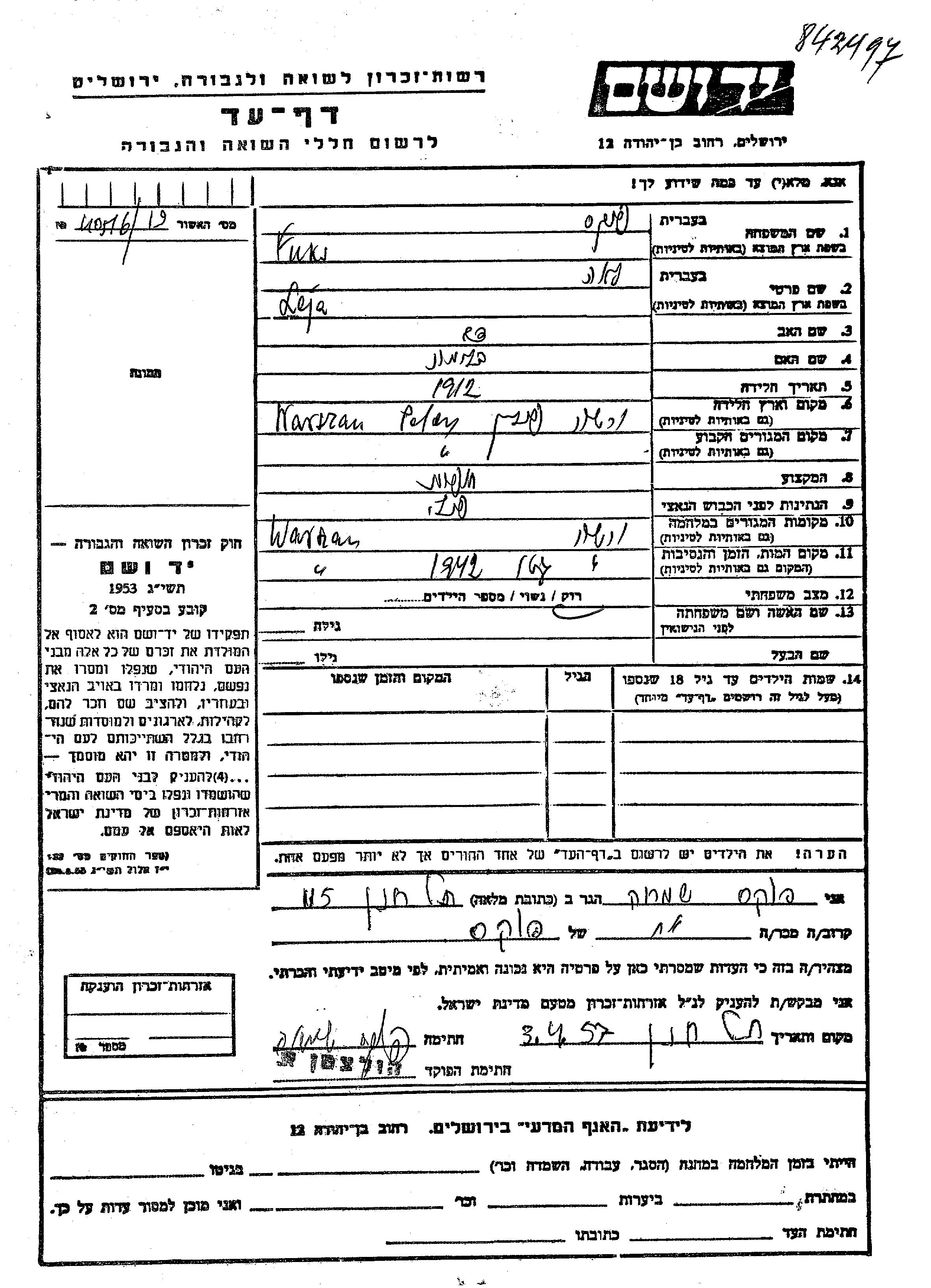 Yad Vashem - Pages of Testimony Names Memorial Collection