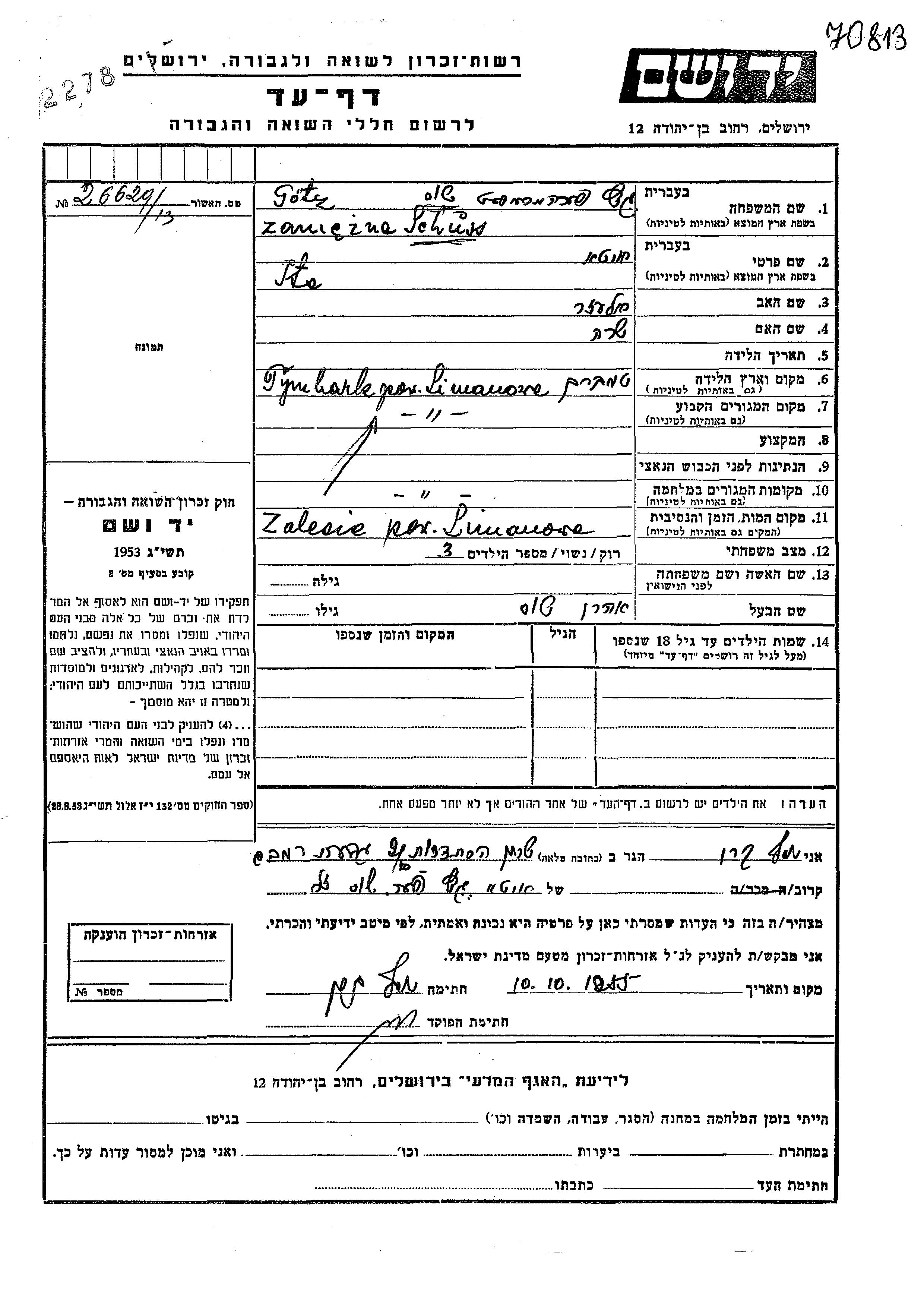 Yad Vashem - Pages of Testimony Names Memorial Collection