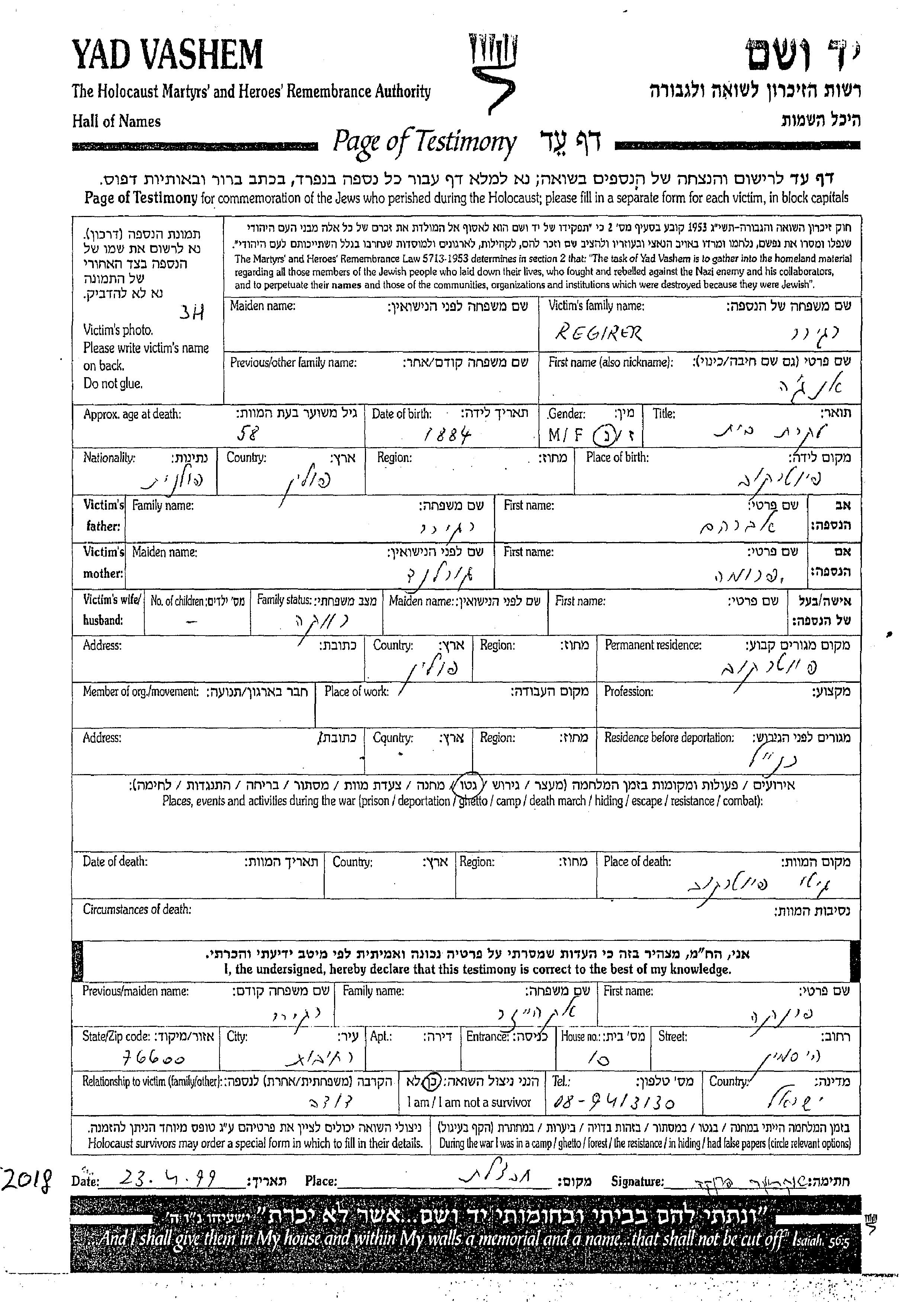 Yad Vashem - Pages of Testimony Names Memorial Collection