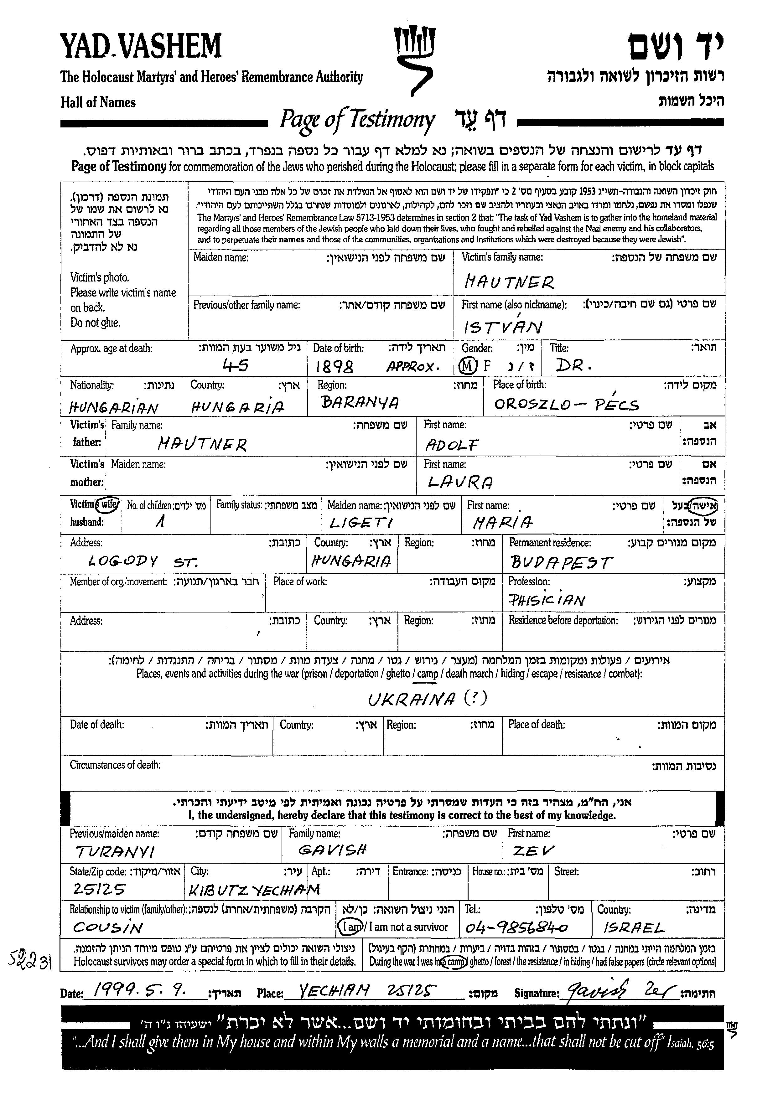 Yad Vashem - Pages of Testimony Names Memorial Collection