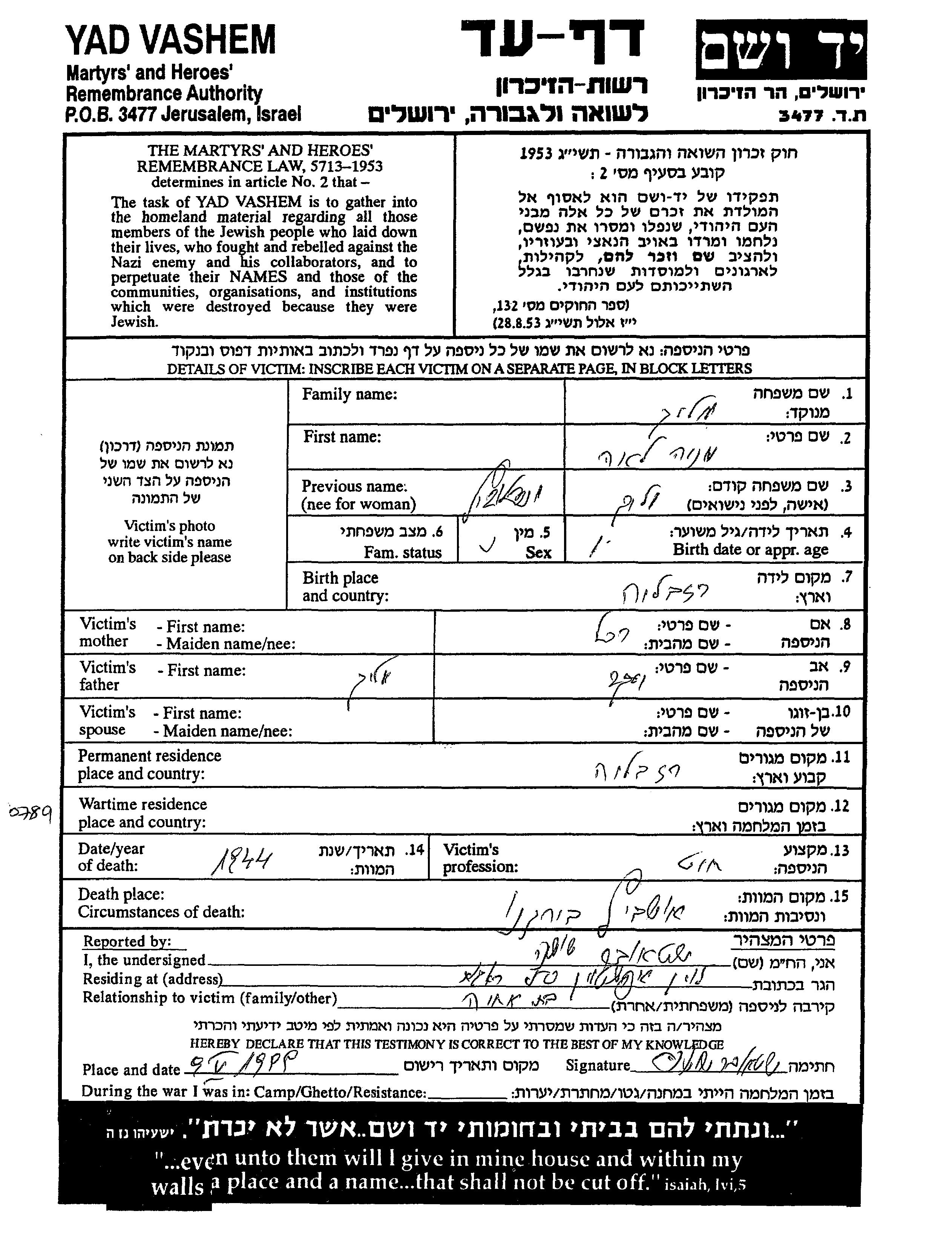 Yad Vashem - Pages of Testimony Names Memorial Collection