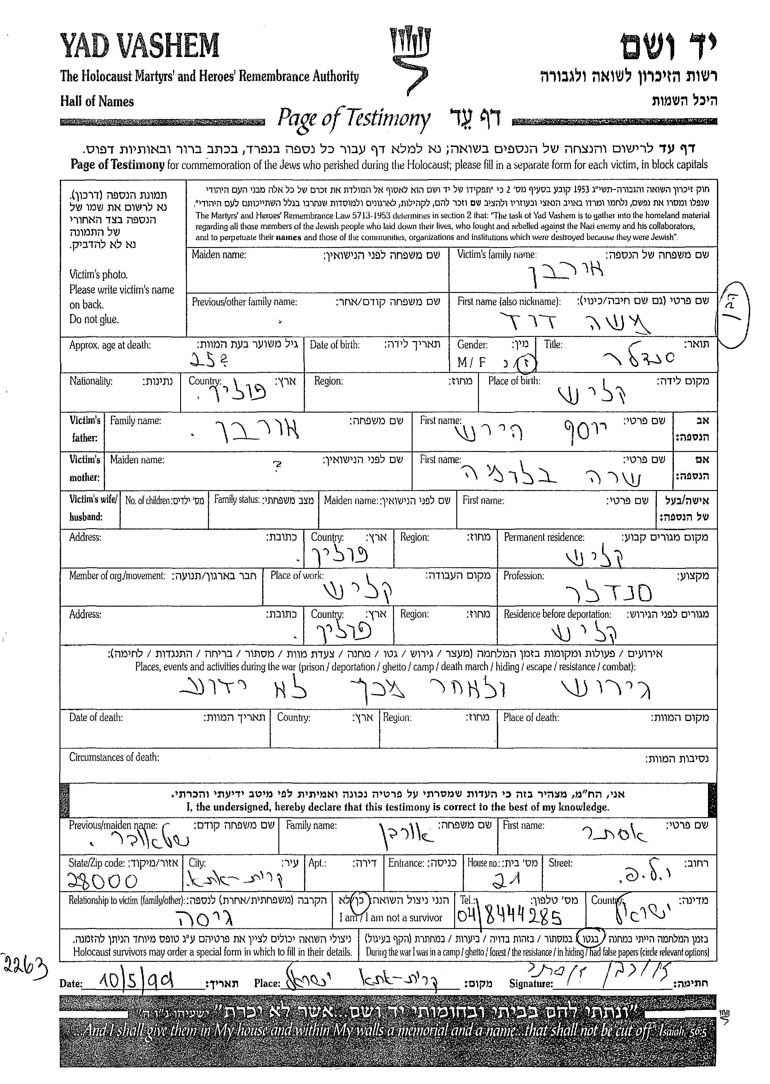 Yad Vashem - Pages of Testimony Names Memorial Collection