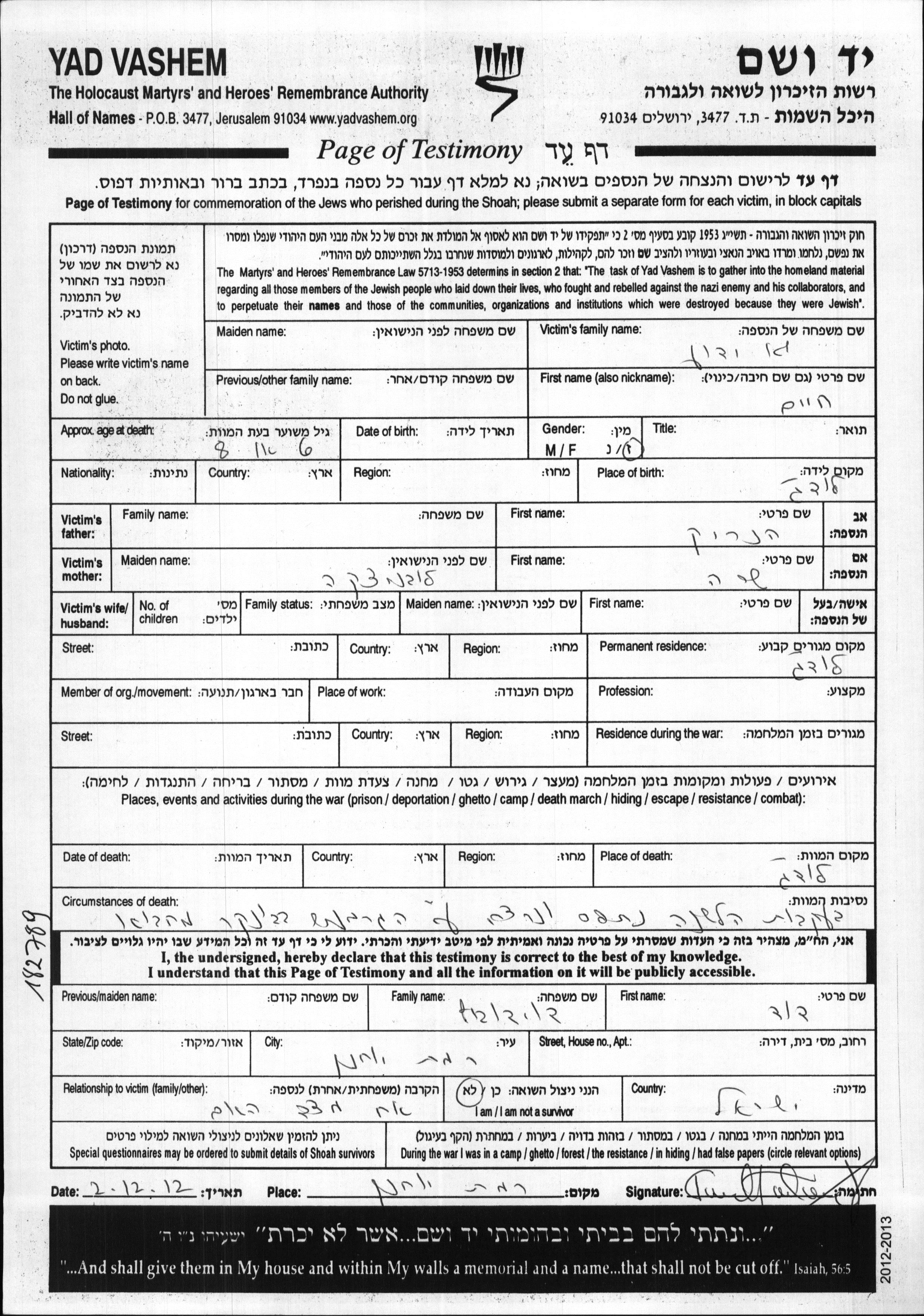 Yad Vashem - Pages of Testimony Names Memorial Collection