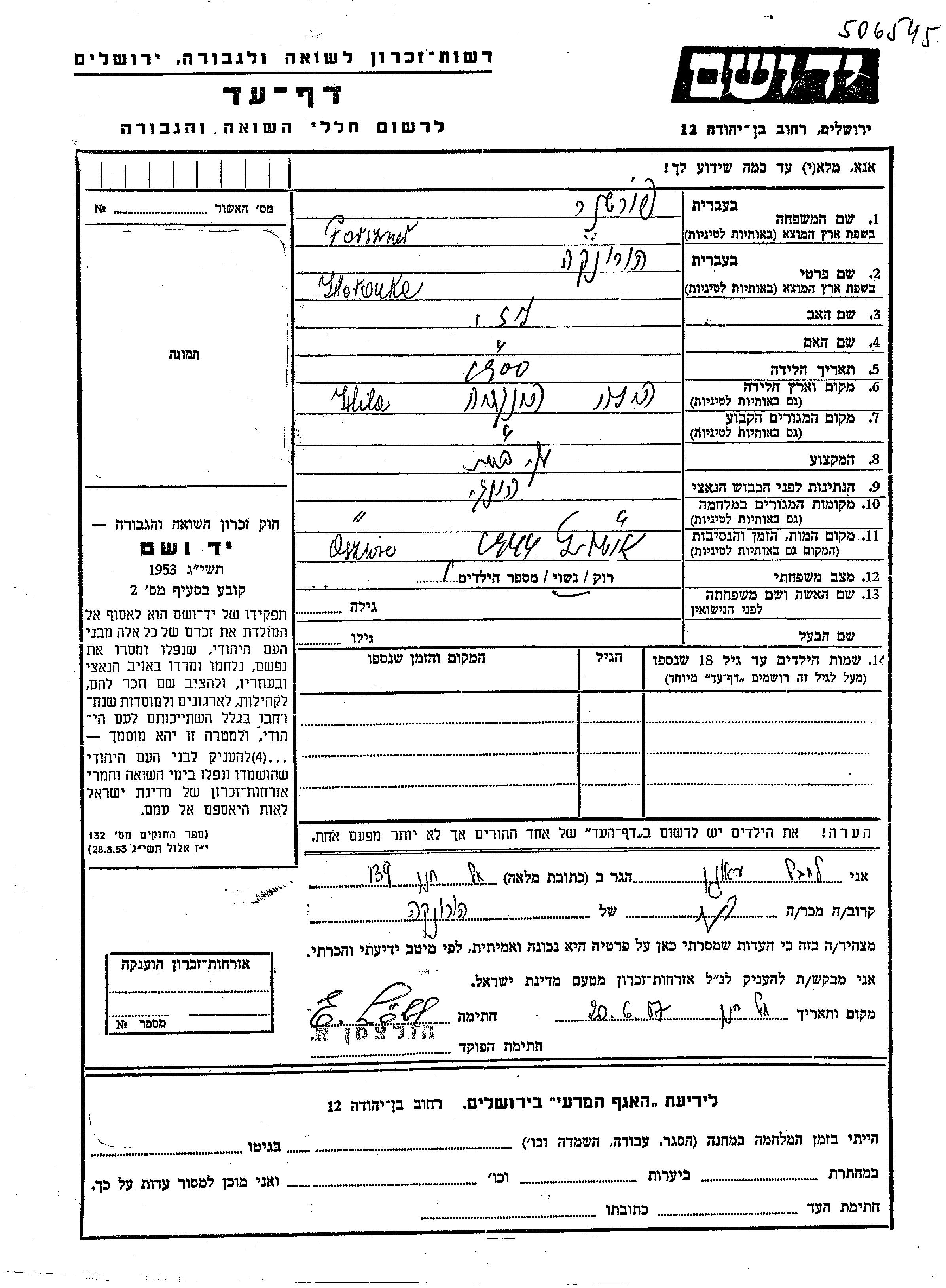 Yad Vashem - Pages of Testimony Names Memorial Collection