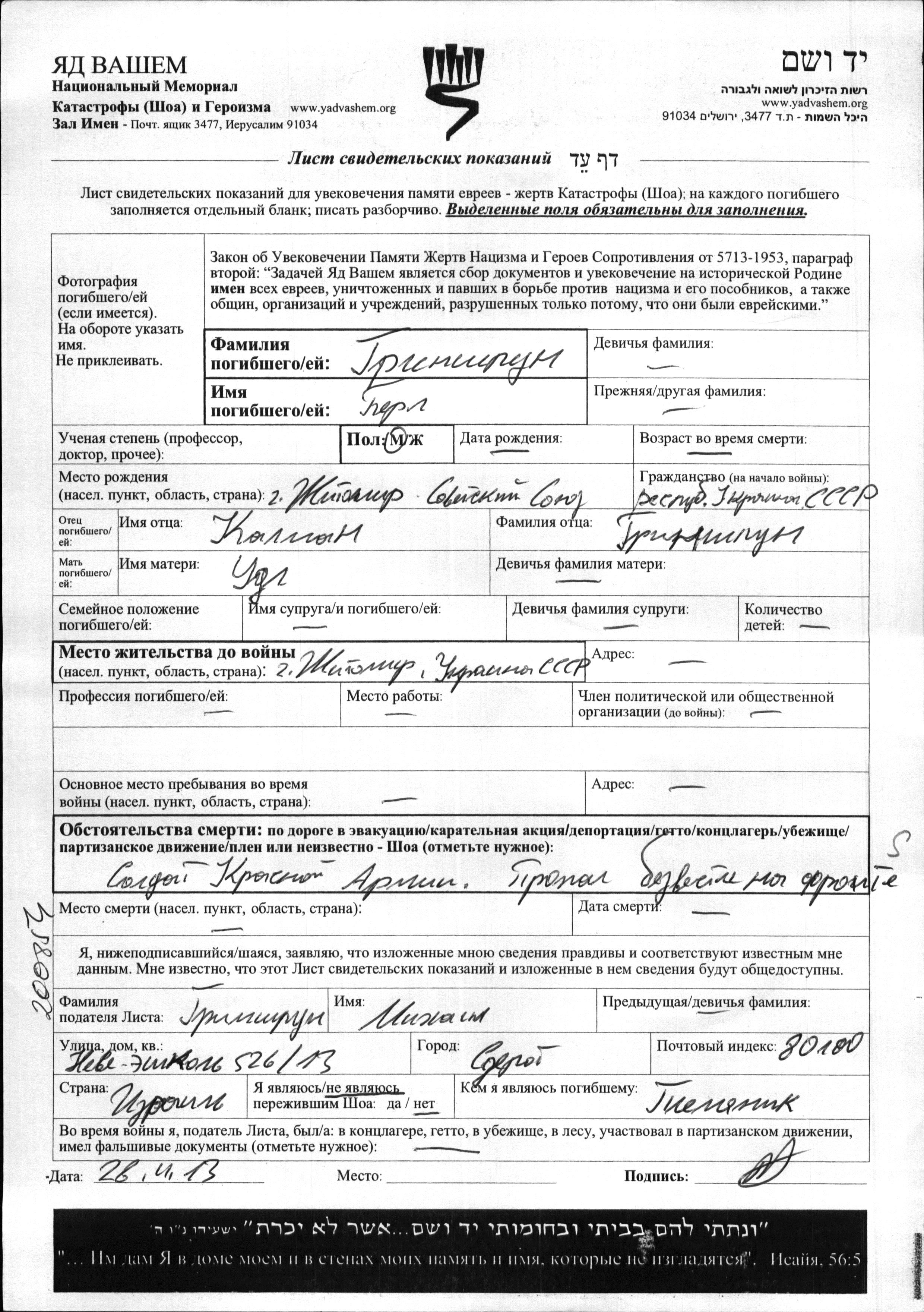 Yad Vashem - Pages of Testimony Names Memorial Collection