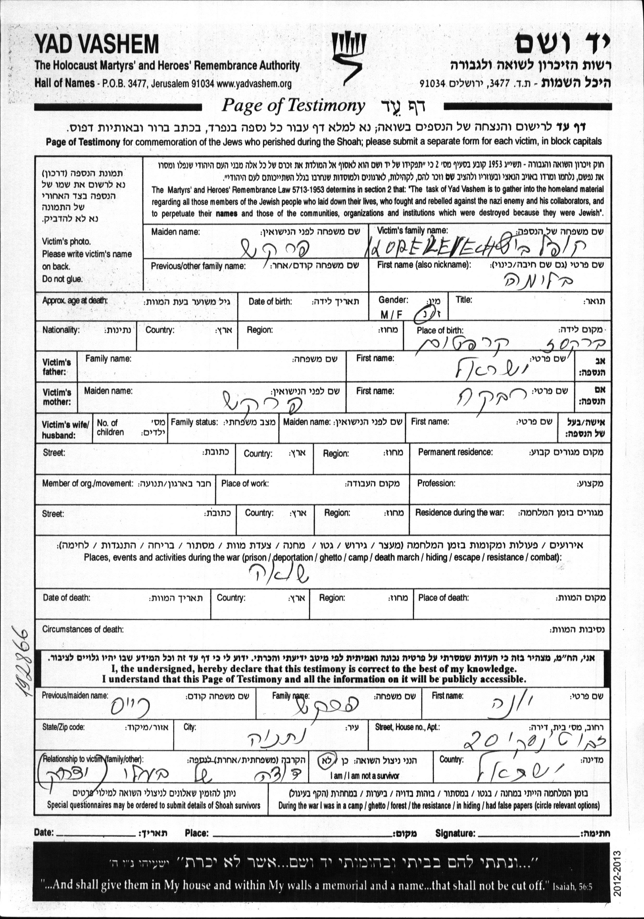 Yad Vashem - Pages of Testimony Names Memorial Collection