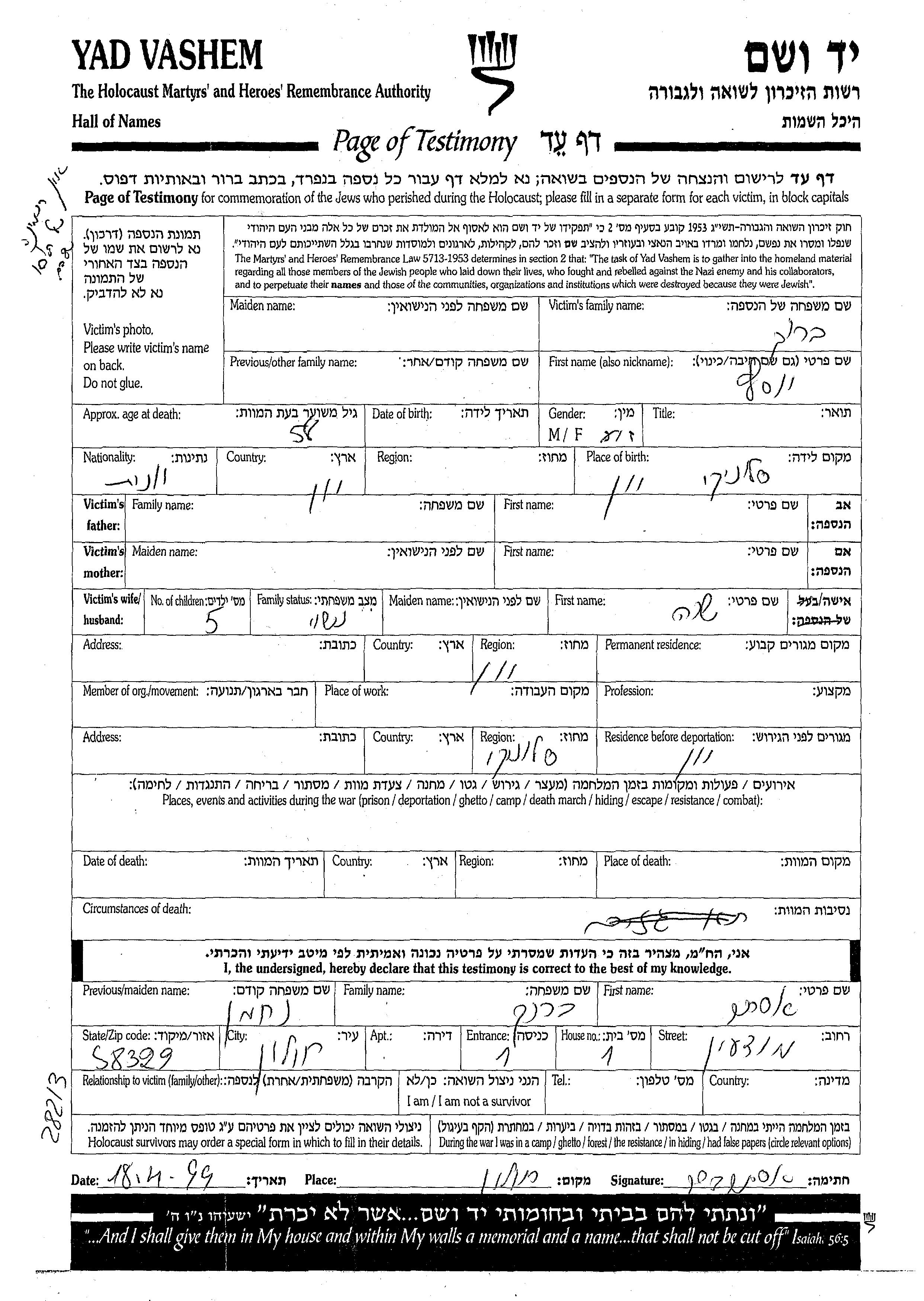Yad Vashem - Pages of Testimony Names Memorial Collection