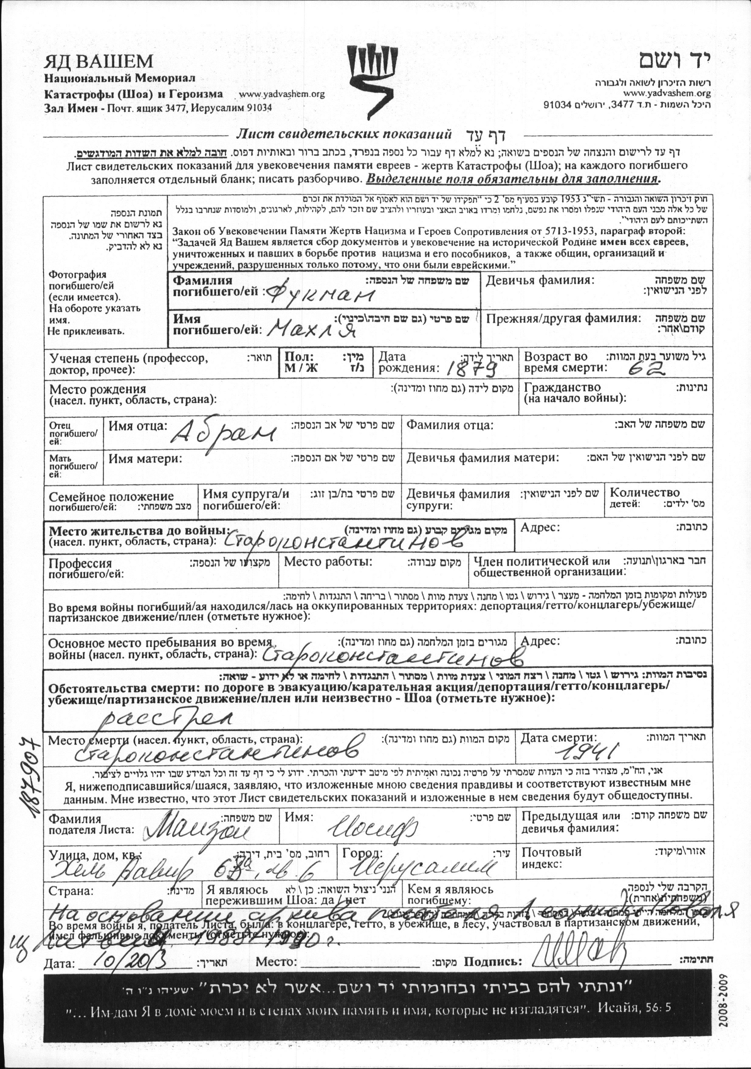 Yad Vashem - Pages of Testimony Names Memorial Collection
