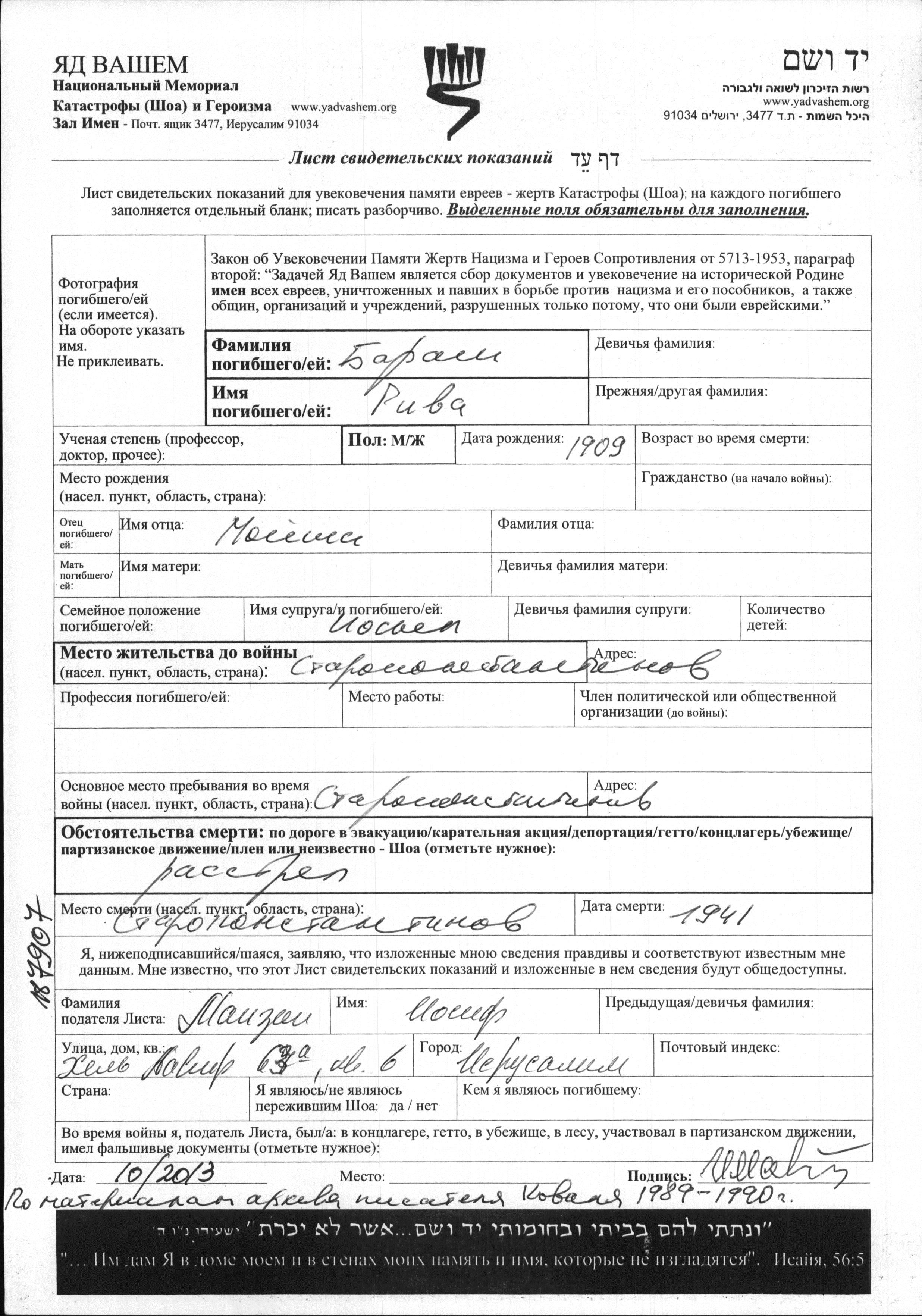 Yad Vashem - Pages of Testimony Names Memorial Collection