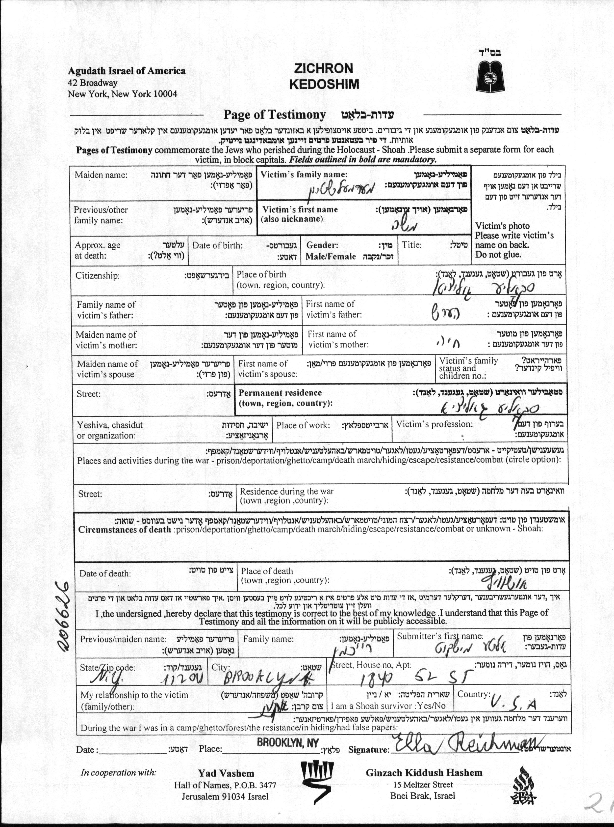 Yad Vashem - Pages of Testimony Names Memorial Collection