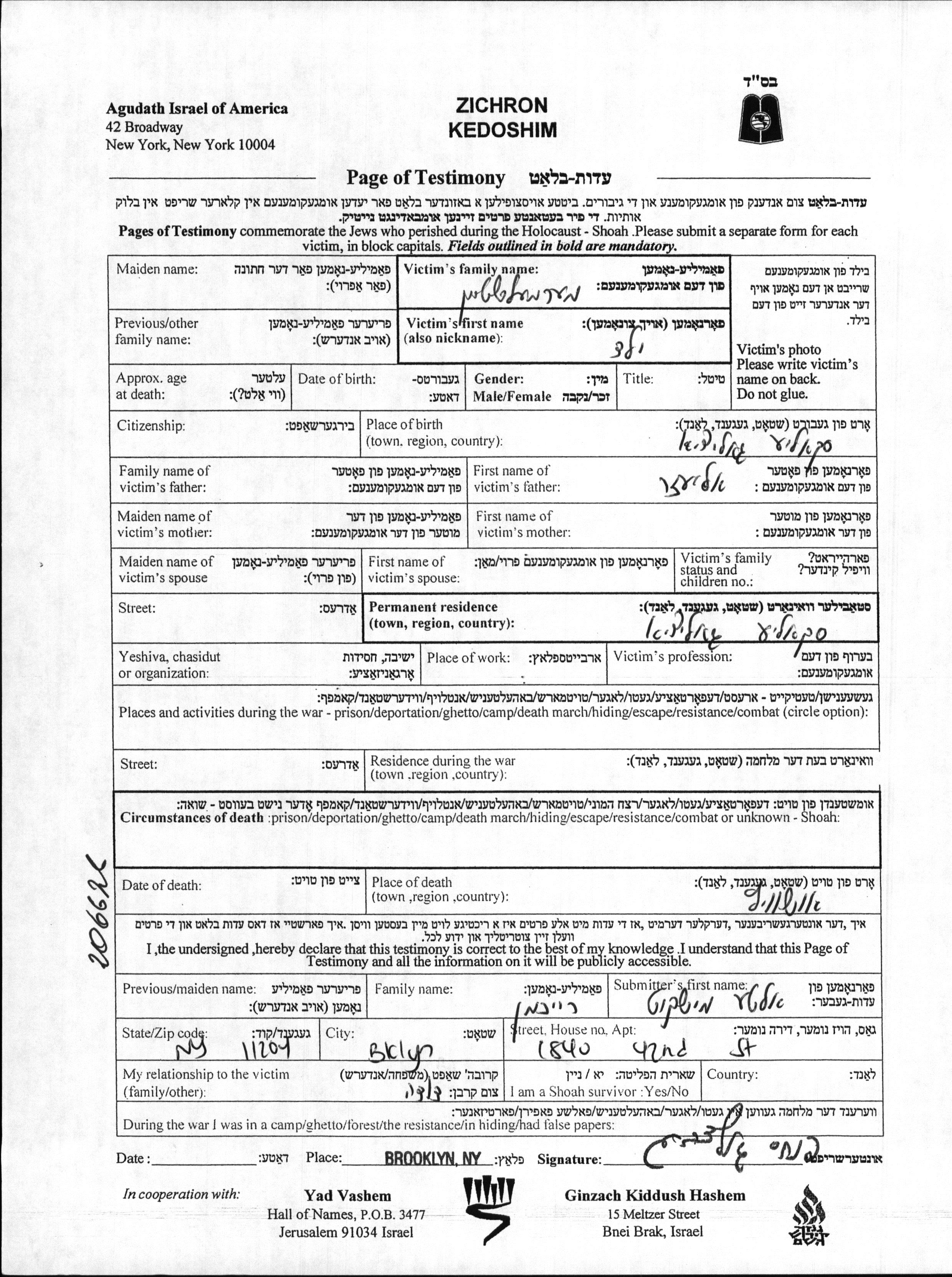 Yad Vashem - Pages of Testimony Names Memorial Collection