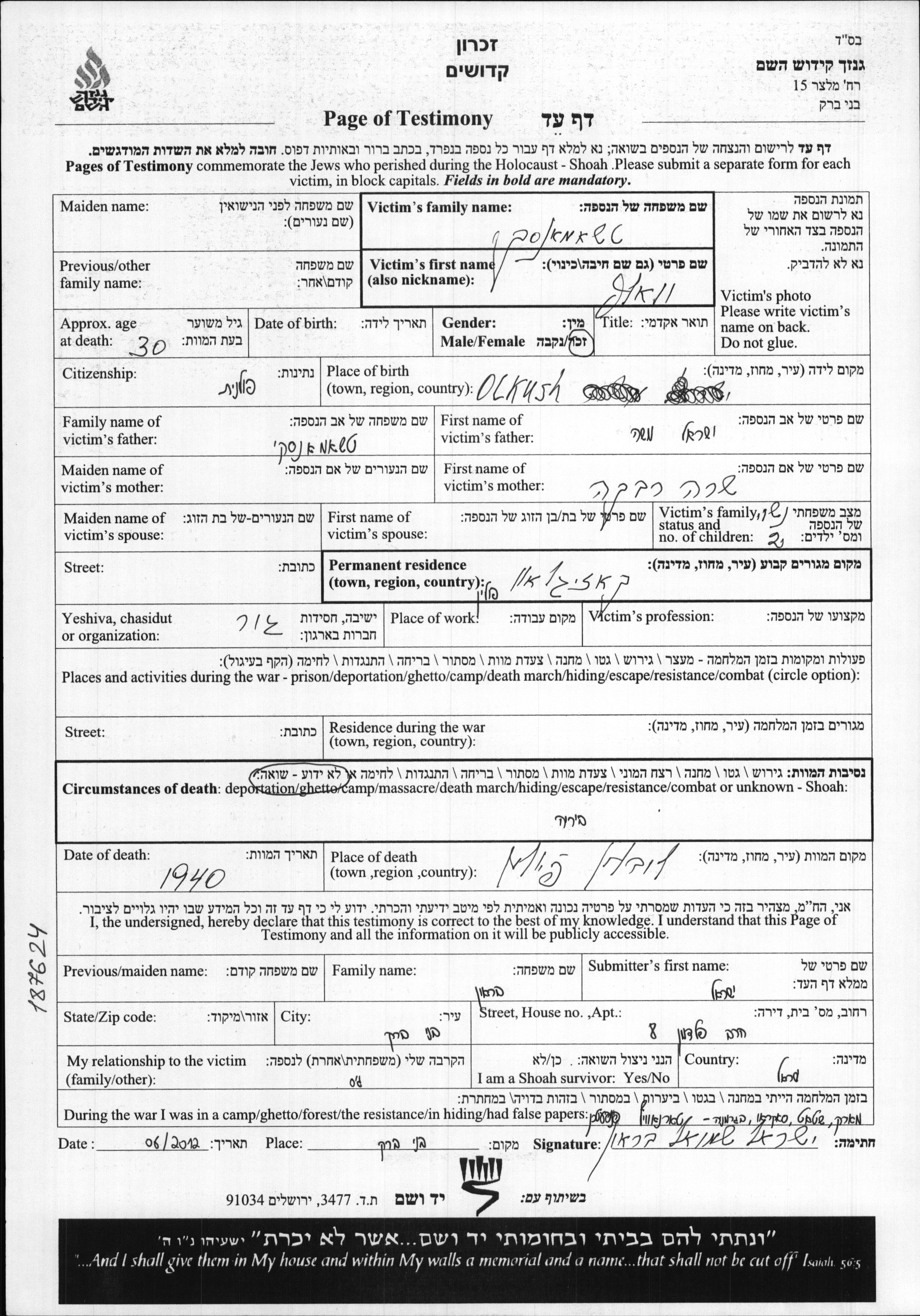 Yad Vashem - Pages of Testimony Names Memorial Collection