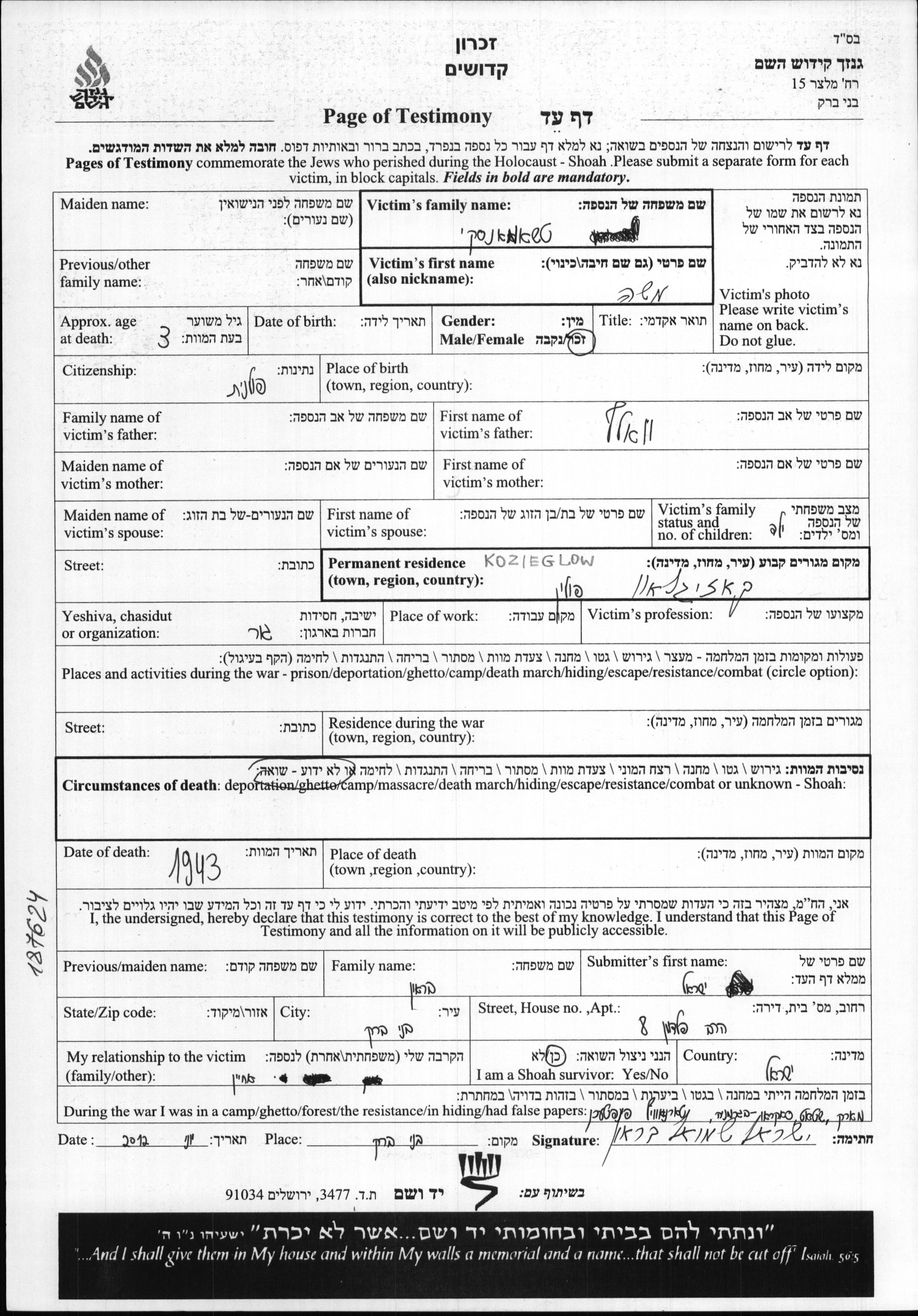 Yad Vashem - Pages of Testimony Names Memorial Collection