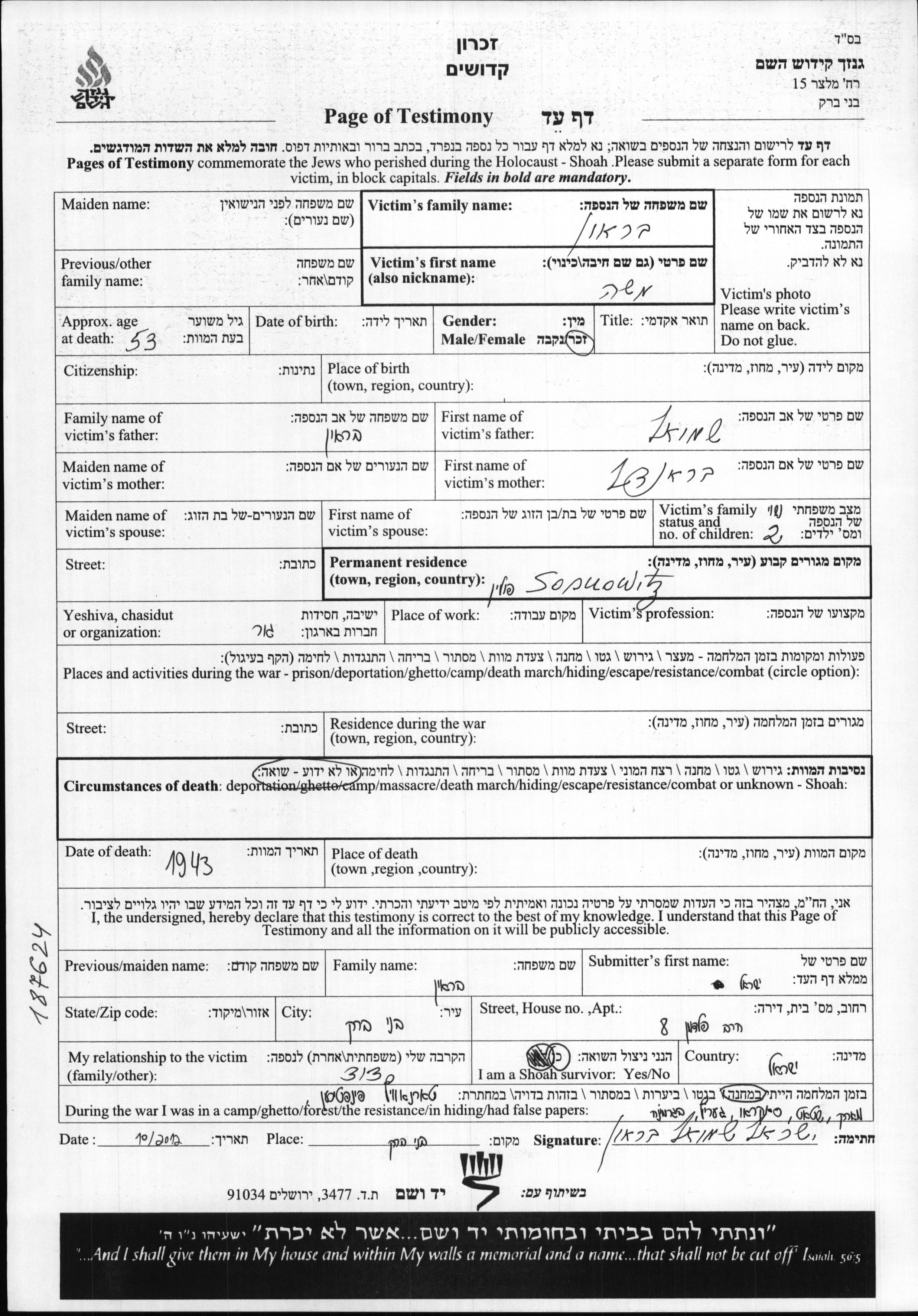 Yad Vashem - Pages of Testimony Names Memorial Collection