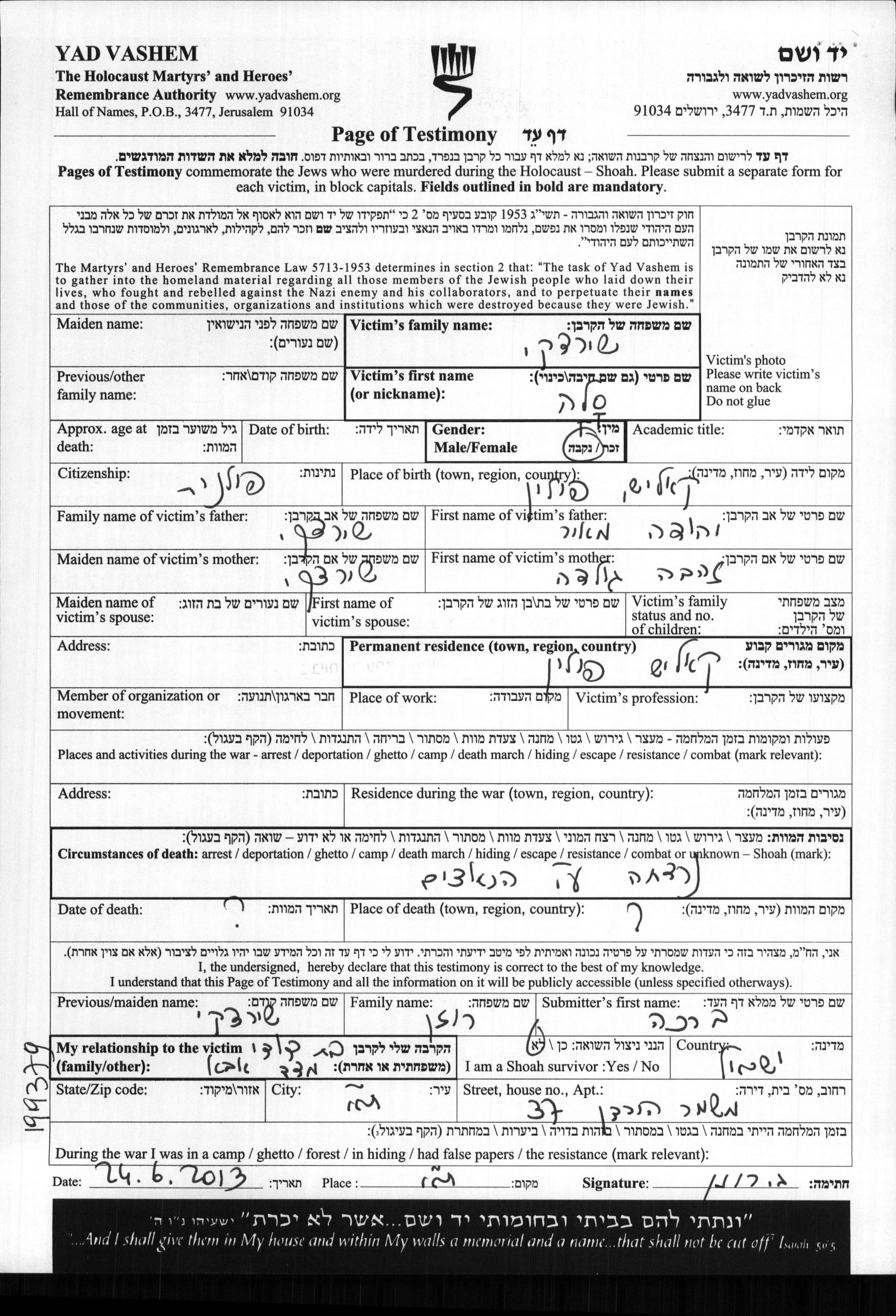 Yad Vashem - Pages of Testimony Names Memorial Collection