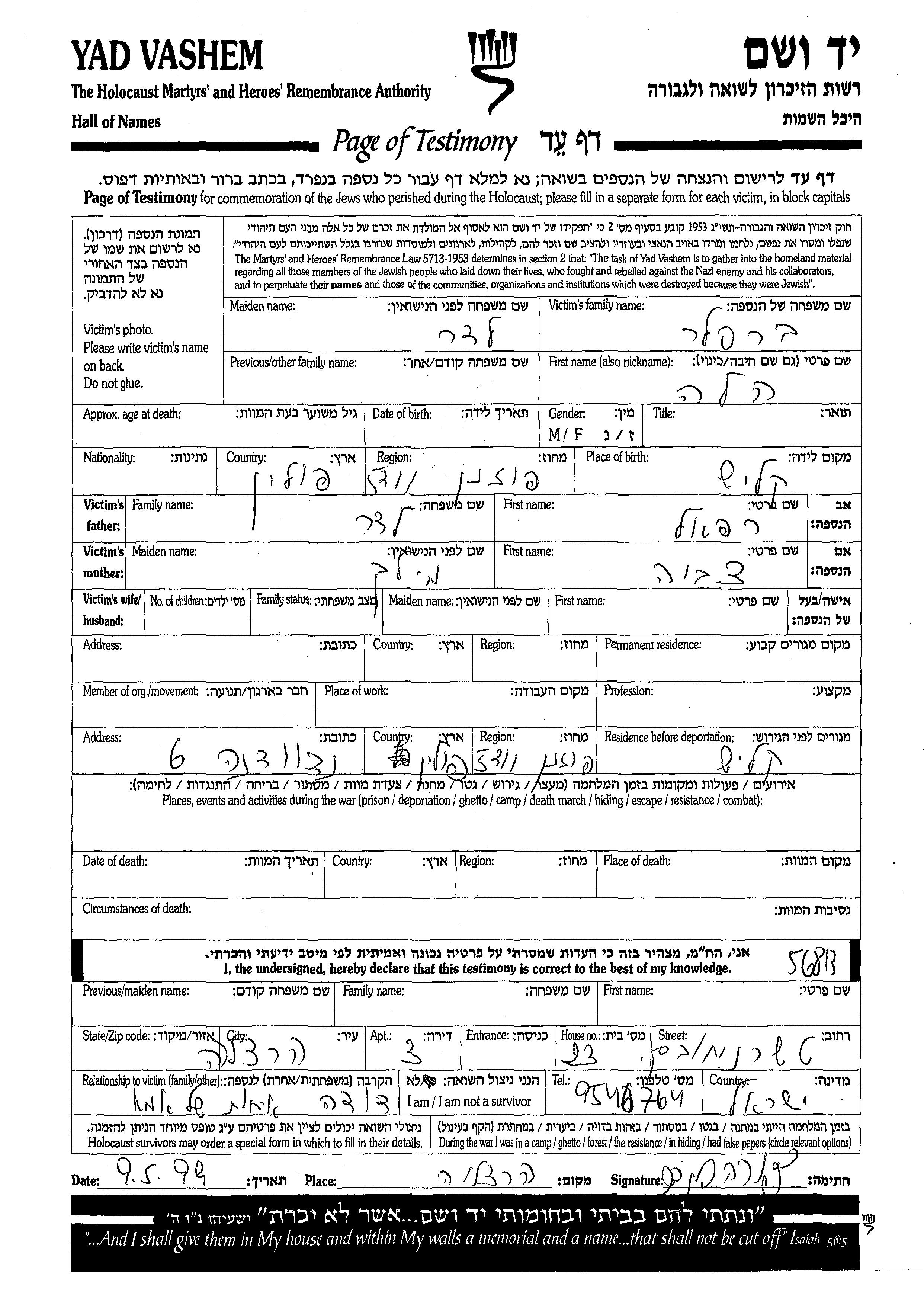Yad Vashem - Pages of Testimony Names Memorial Collection