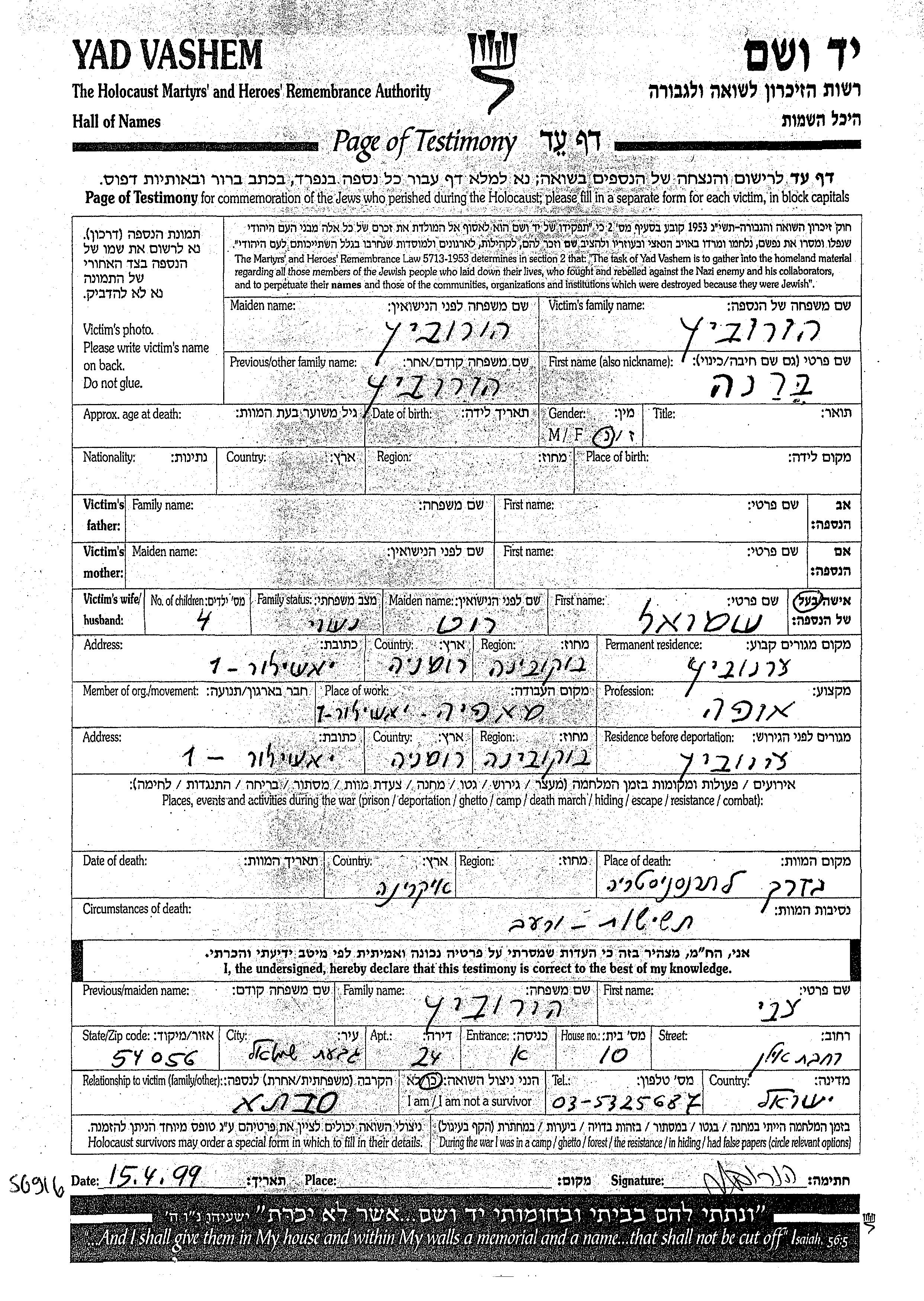 Yad Vashem - Pages of Testimony Names Memorial Collection