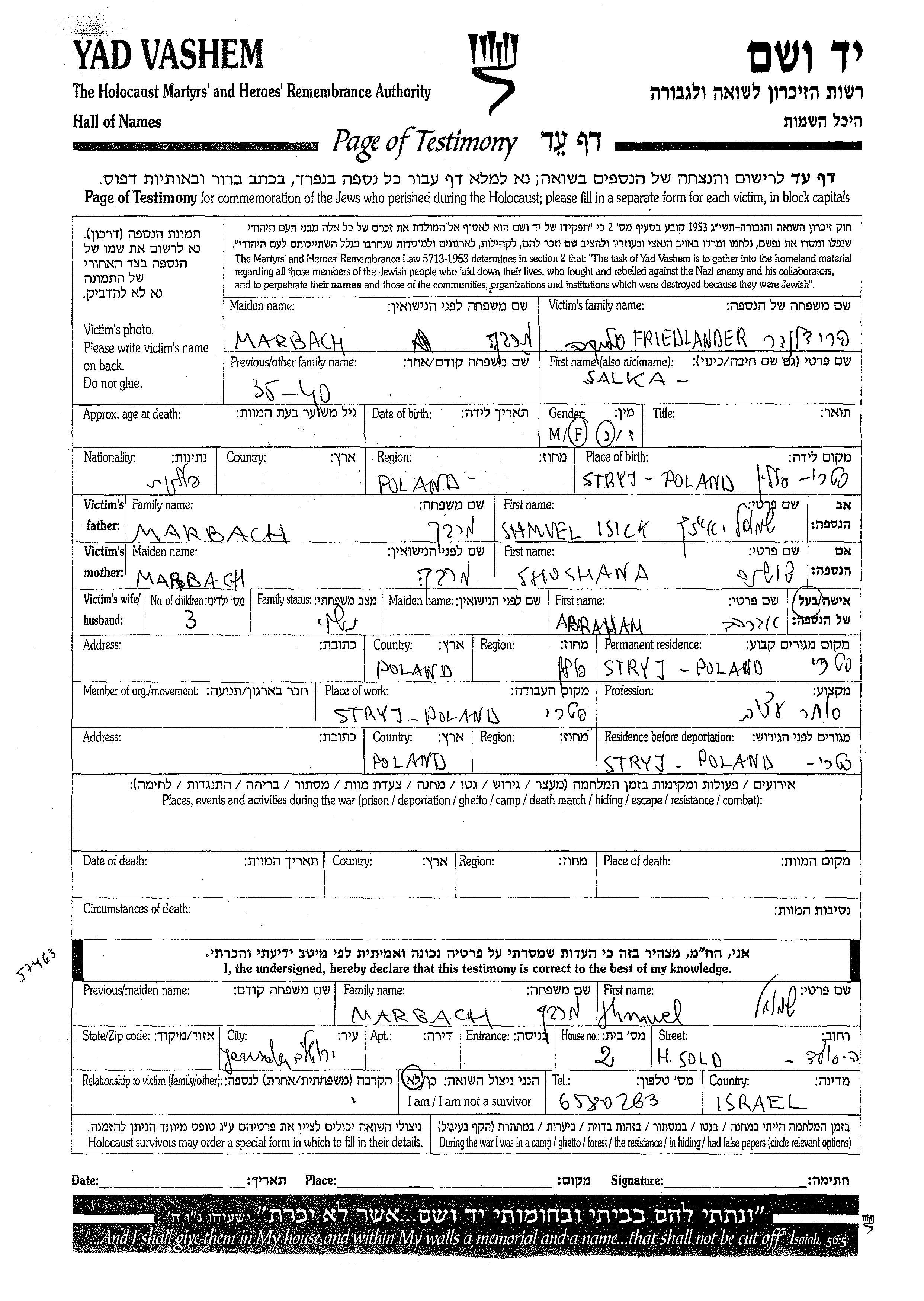 Recherche par nom du dépositeur de la Feuille de témoignage. Cette recherché indique aussi les noms de jeunes filles.