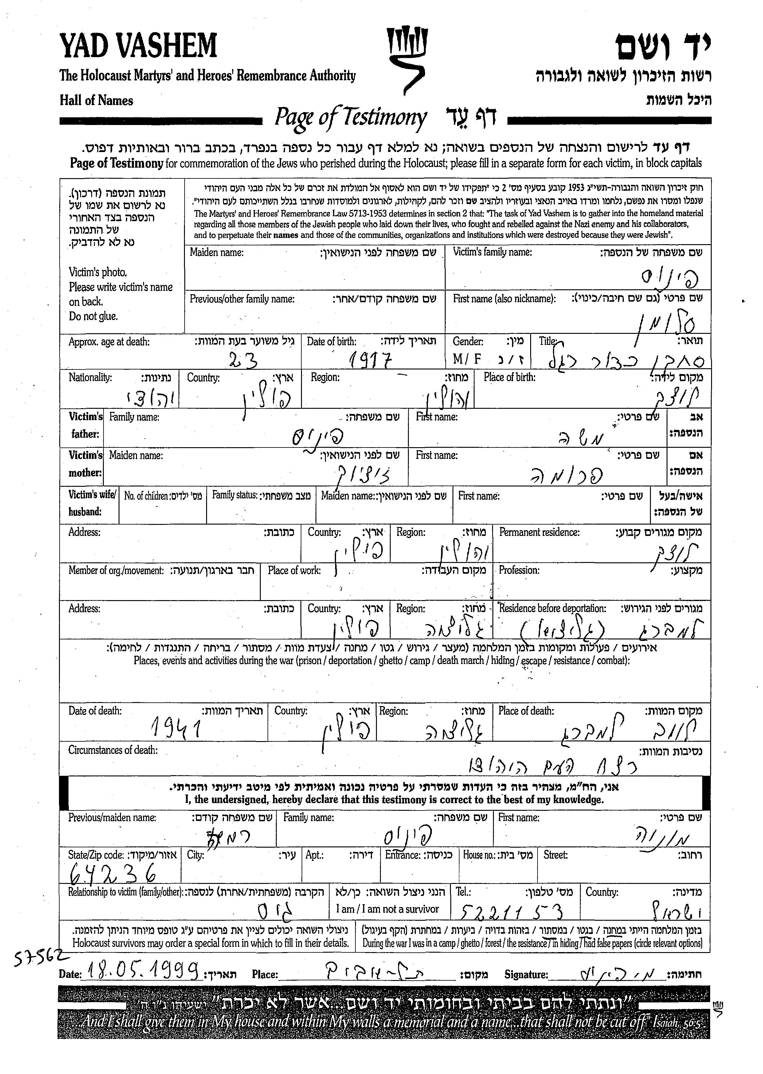 Yad Vashem - Pages of Testimony Names Memorial Collection