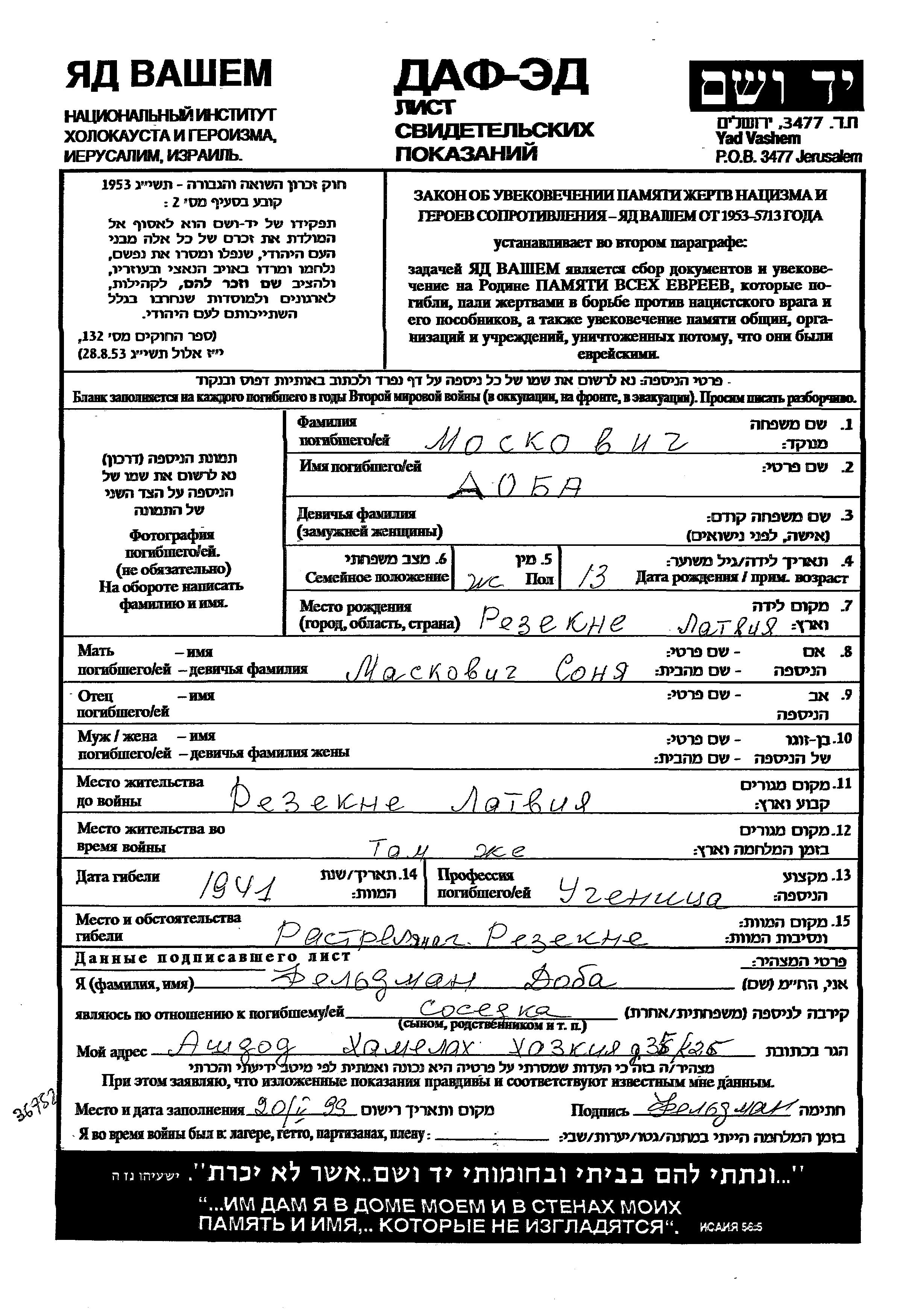 Yad Vashem - Pages of Testimony Names Memorial Collection