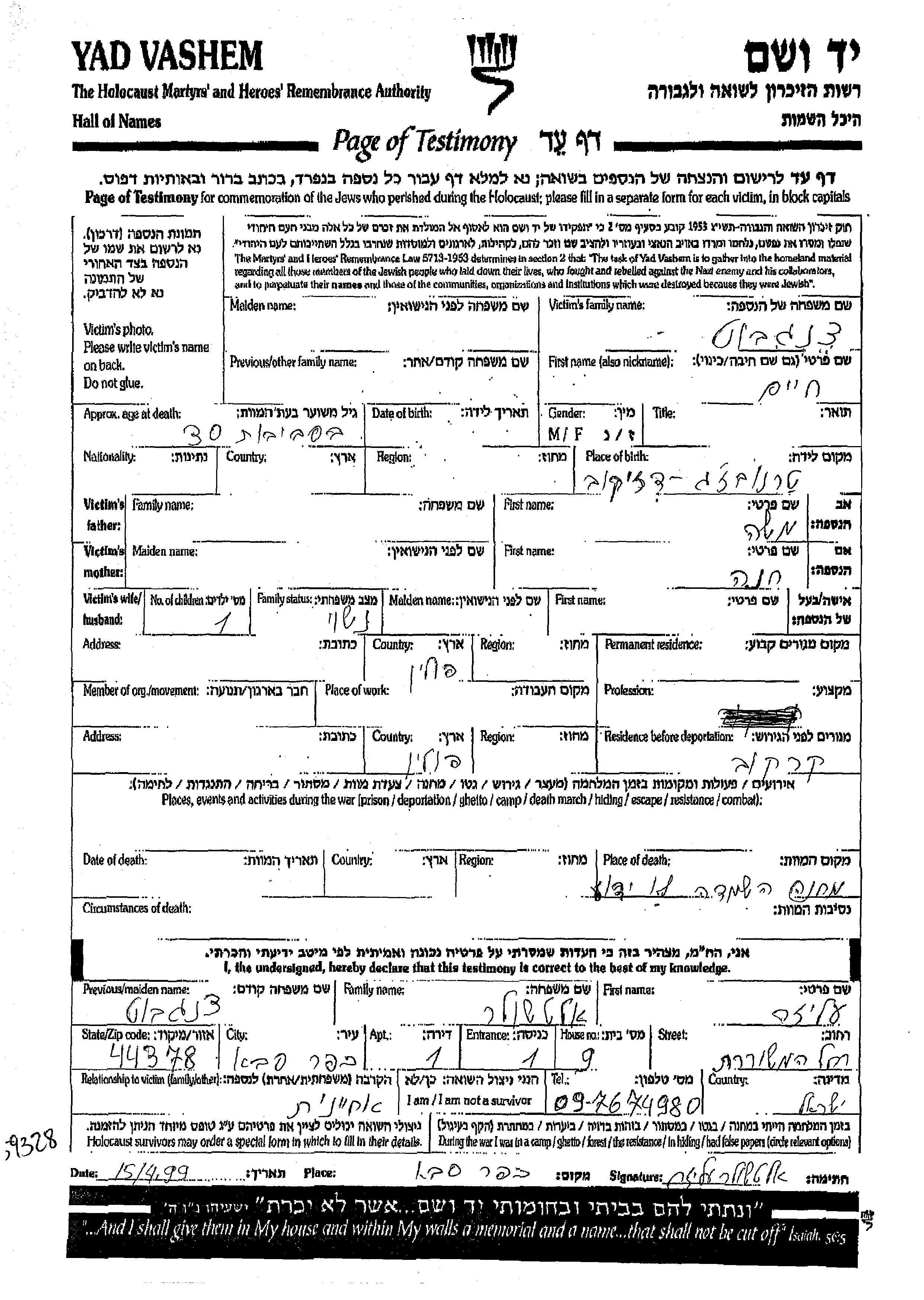 Yad Vashem - Pages of Testimony Names Memorial Collection
