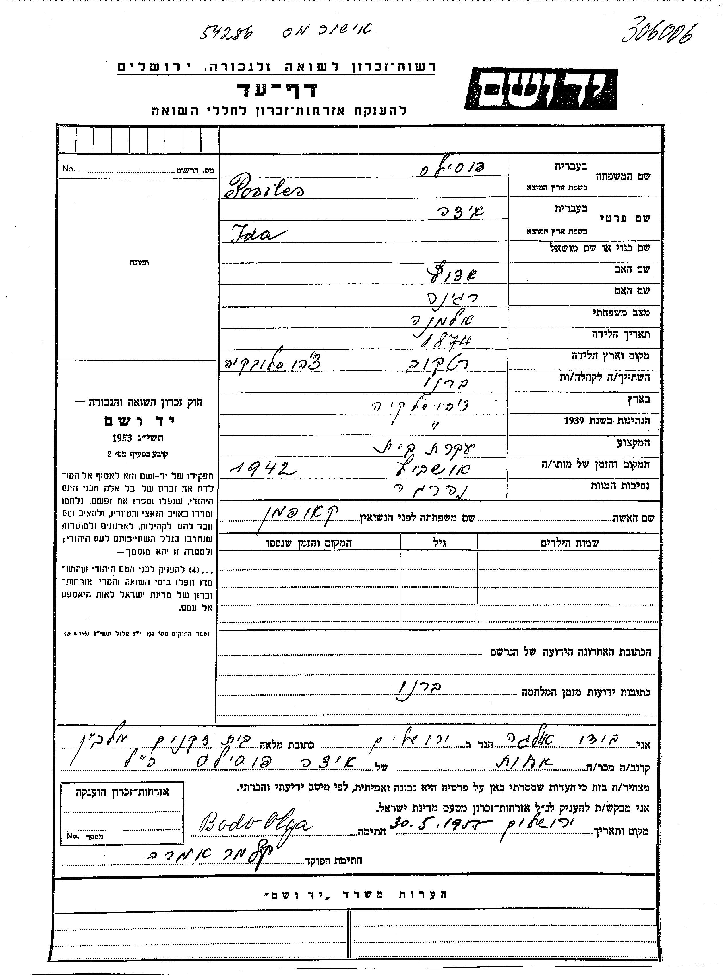 Yad Vashem - Pages of Testimony Names Memorial Collection