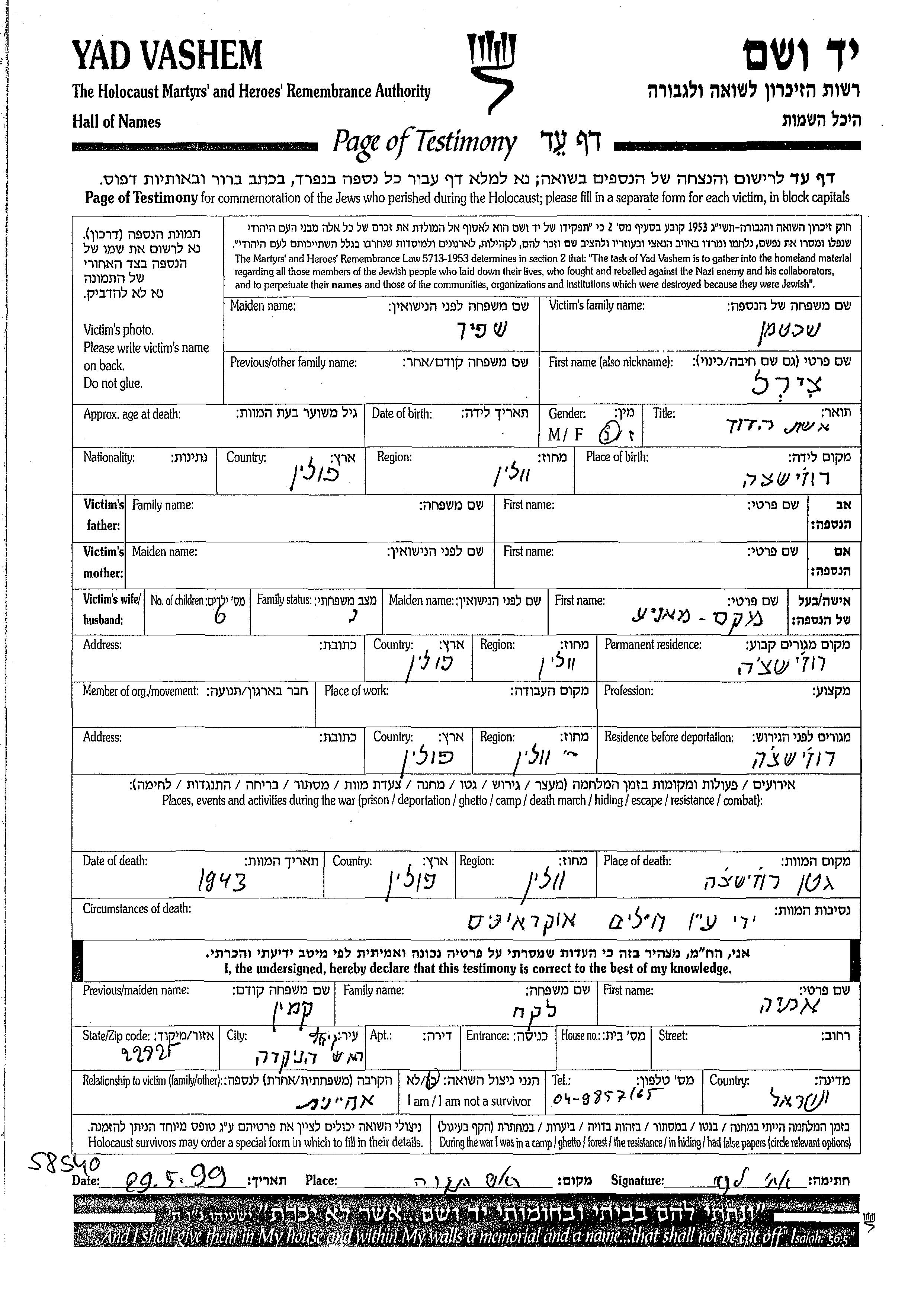 Yad Vashem - Pages of Testimony Names Memorial Collection