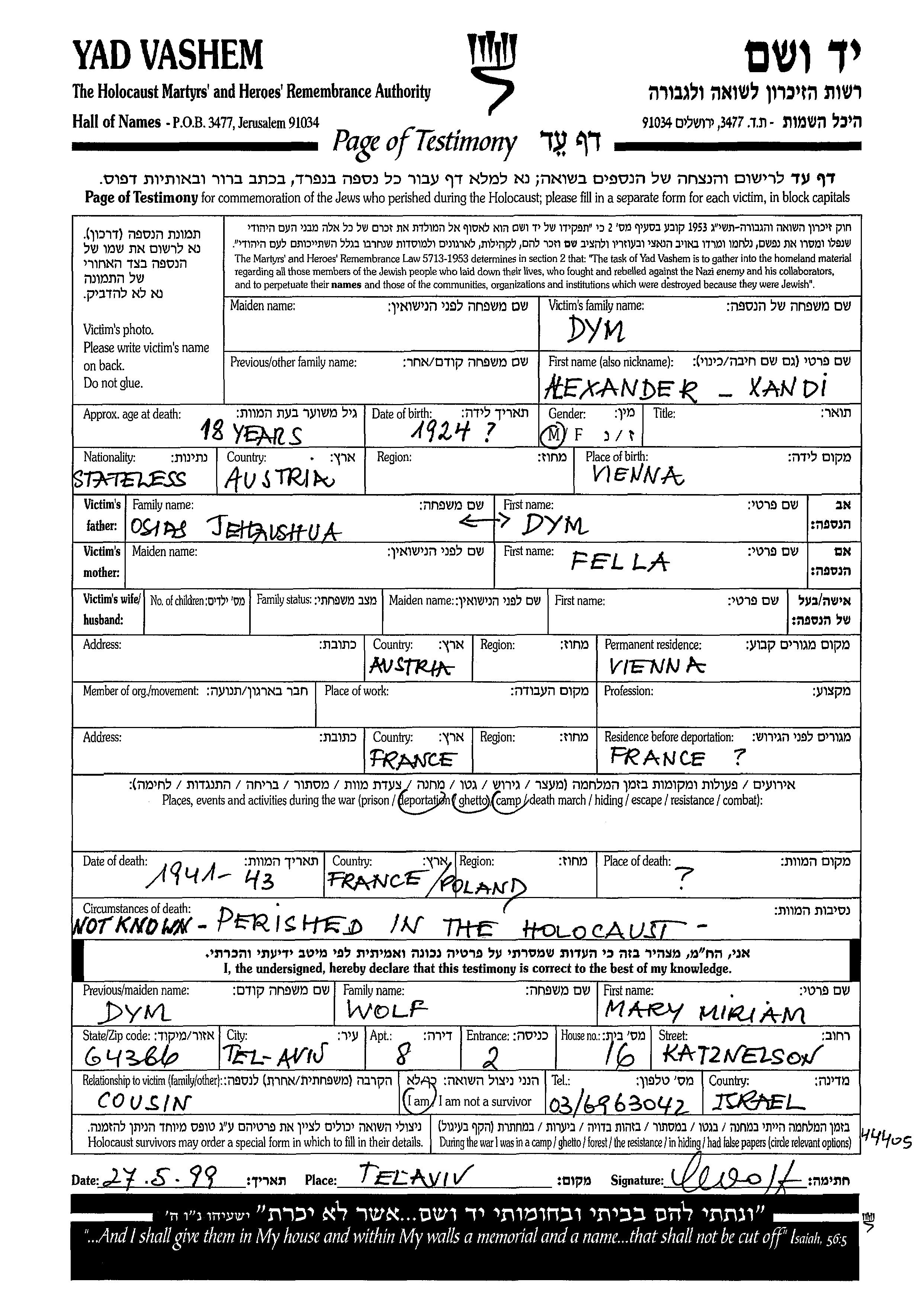 Recherche par date de la mort pendant la période de la Shoah: 1933-1945. Sélectionnez 'Exact'; dans la liste pour rechercher l'année exacte, ou sélectionner '+/- 2 ans'; ou '+/- 5 ans