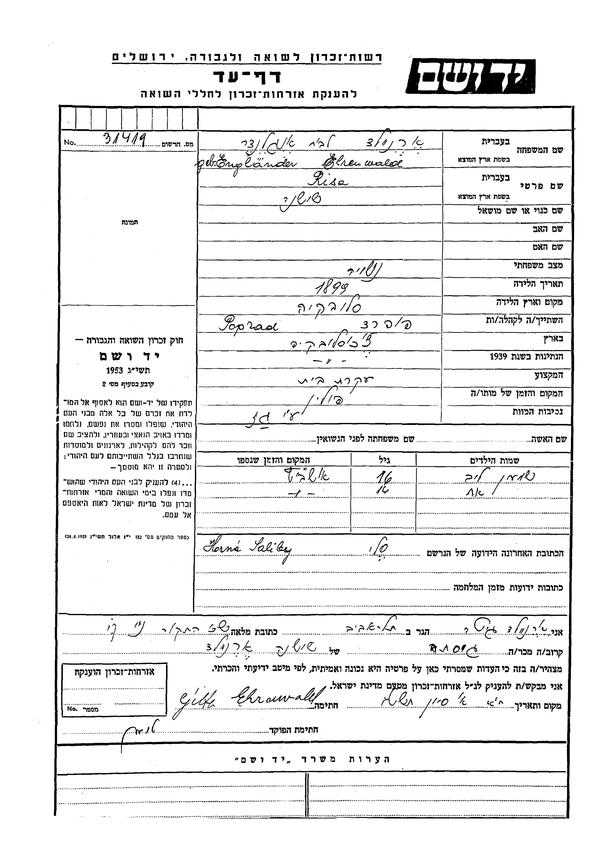 Yad Vashem - Pages of Testimony Names Memorial Collection