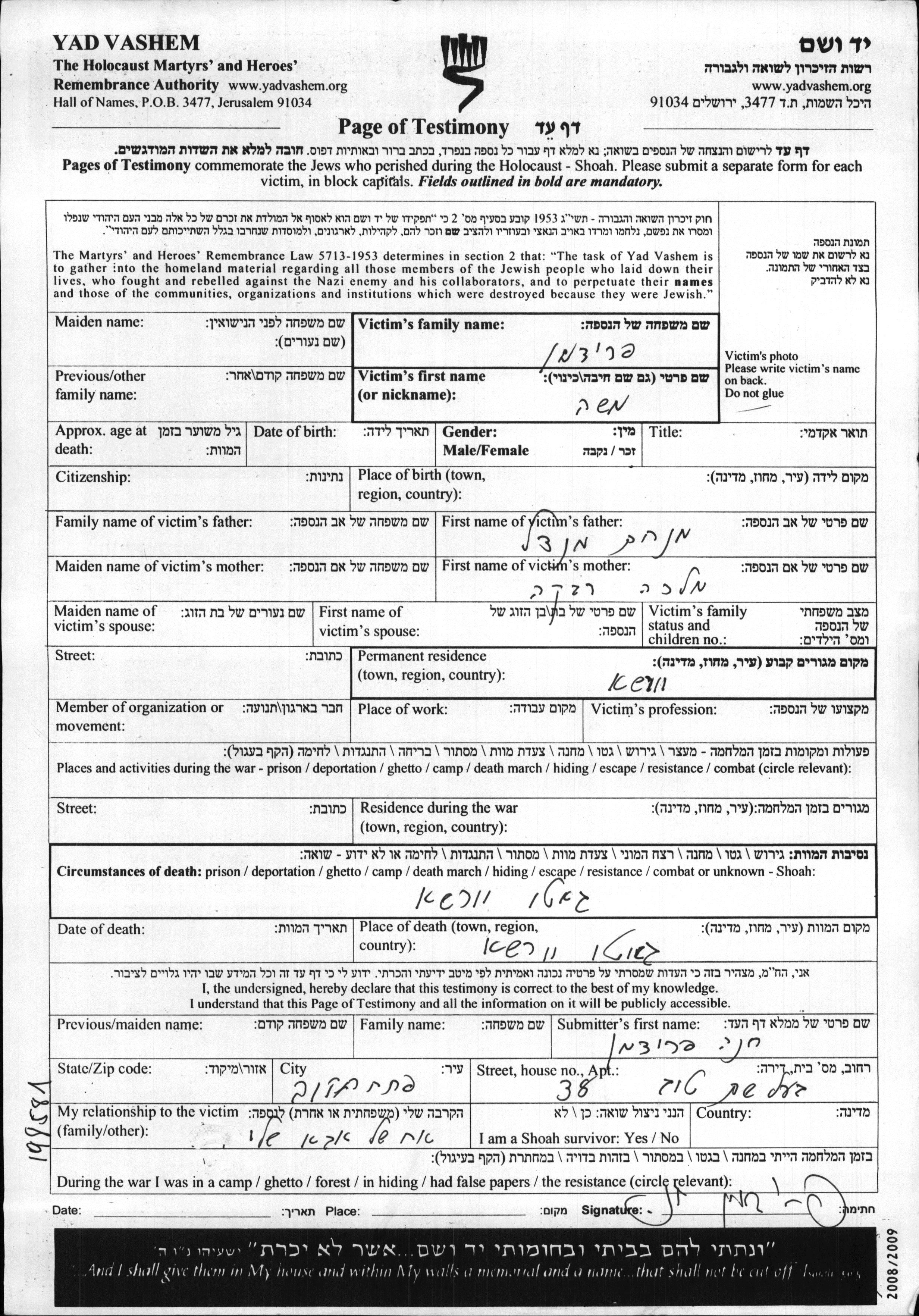 Yad Vashem - Pages of Testimony Names Memorial Collection