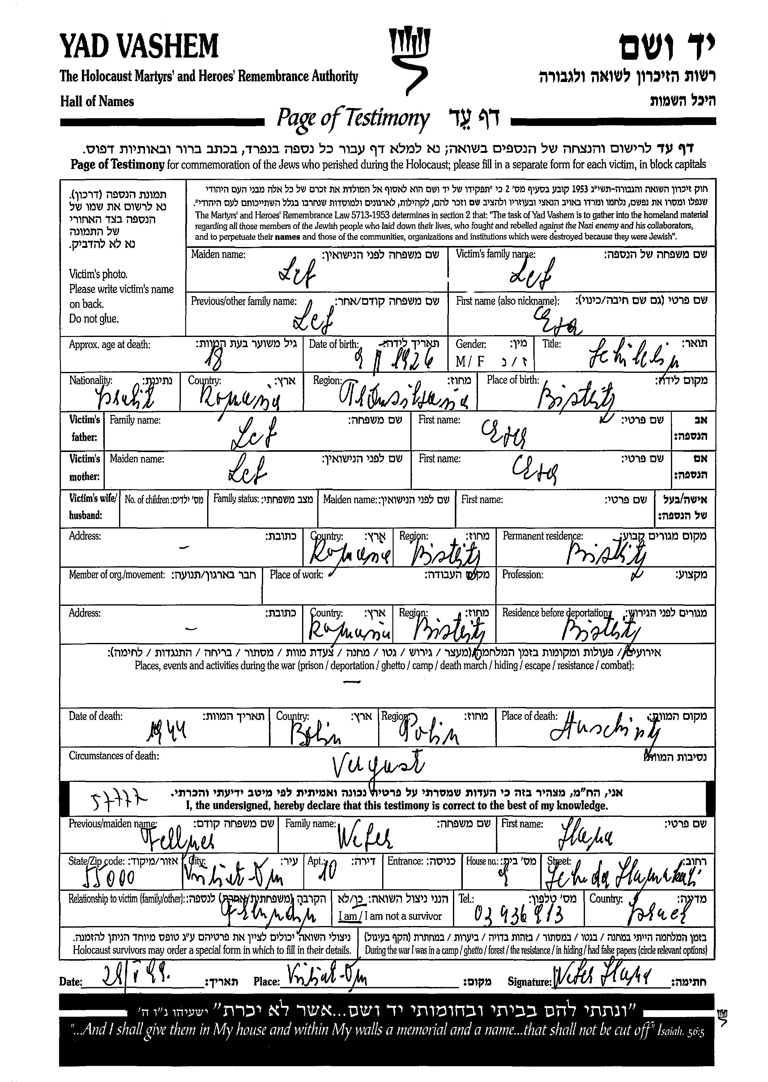 Recherche par lieu de résidence permanente avant la Shoah, ville, village, département, région ou pays.